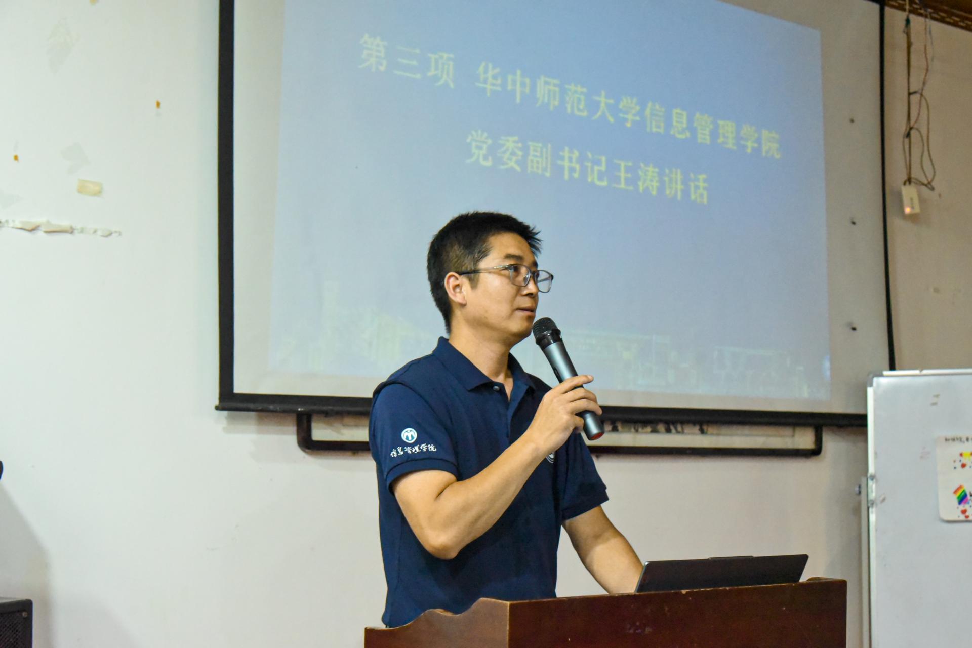 随后,王涛上台致辞。王涛首先对赵李桥镇为追光实践队暑期支教活动作出的支持表示感谢。他指出,赵李桥镇为志愿者们提供了良好的食宿条件与教学环境,这些是“希望家园”活动能够进行的必要条件。同时,王涛对往期“希望家园”活动进行了总结。追光实践队在赵李桥镇的志愿活动已经连续举行六余年,六年内共有120余名志愿者,600余名学生参与了“希望家园”的活动。除此之外,王涛还对全体志愿者们提出了三点要求:勇担责任、分工合作、确保安全。最后,王涛寄语全体志愿者,他希望志愿者们能够充分展现华师学子的精神风貌,切实做好本职工作,真正做到为“希望家园”的孩子们带去知识和希望。