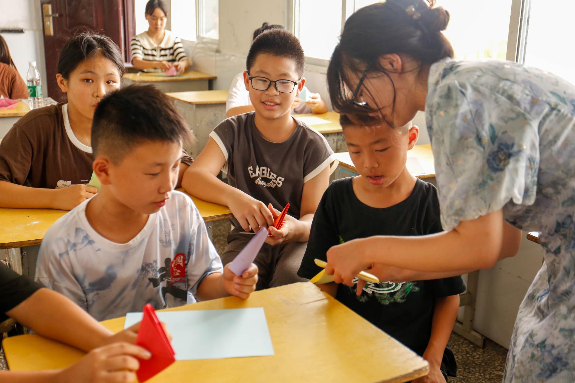 “海日生残夜,江春入旧年。”7月9日,在七年级的语文课堂上,老师逐句解析,以深入浅出的语言带领学生们领略北固山的壮美景色;在七年级的趣味美术课上,老师以“击鼓传画”的形式指导学生开展手工折纸活动,把“爱”折进纸中。