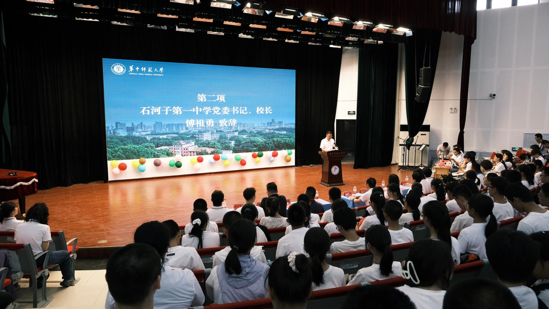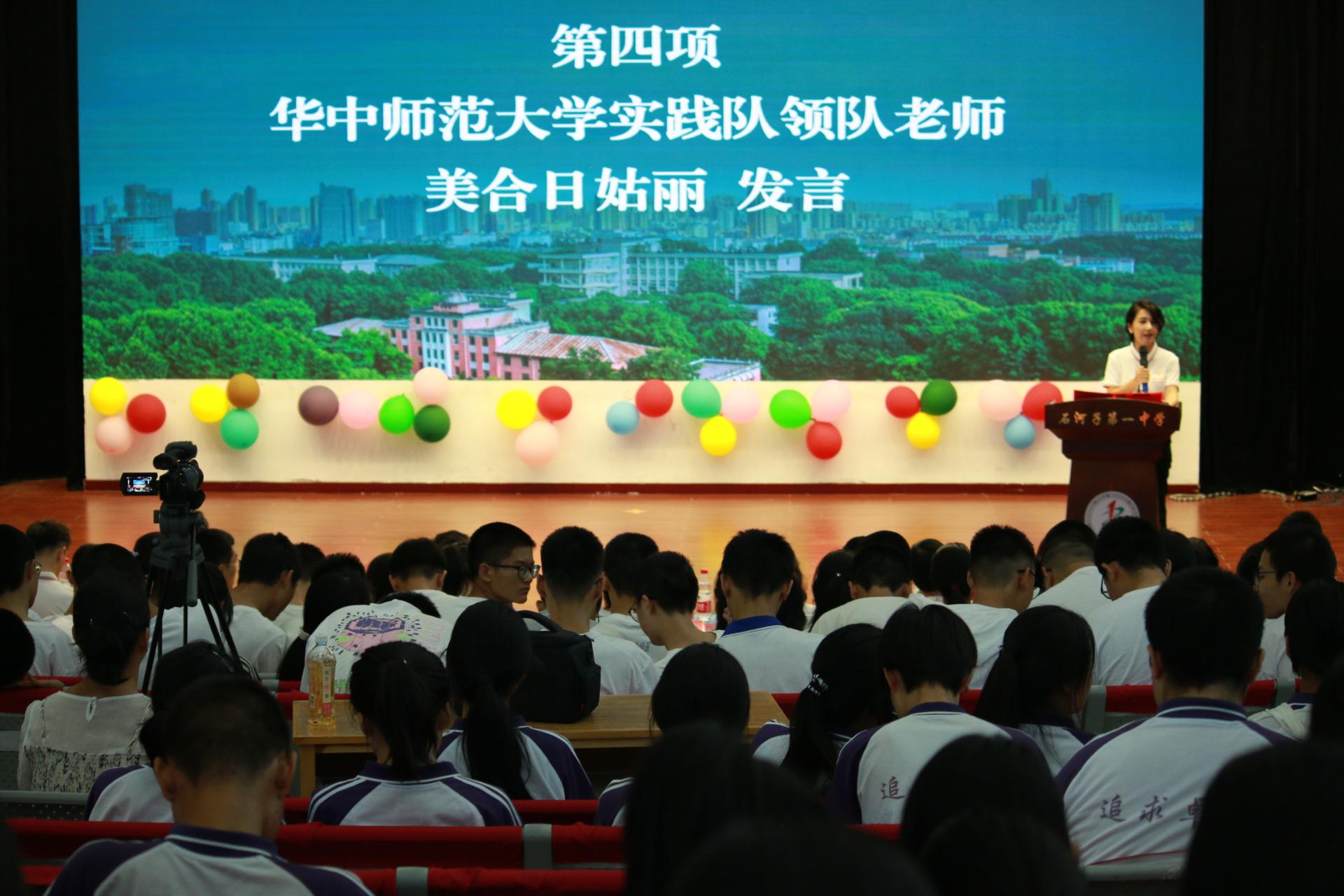 华大青年讯(通讯员 杜芮 屈卓瑶 付佳雯)7月10日,华中师范大学“丝路·逐梦”实践队赴石河子第一中学志愿服务总结汇报大会暨教育实习基地挂牌仪式在该校群贤楼报告厅举办。华中师范大学、石河子第一中学相关领导出席,实践队全体成员,一中师生代表及学生家长参加。活动由该校党办主任李元莉主持。