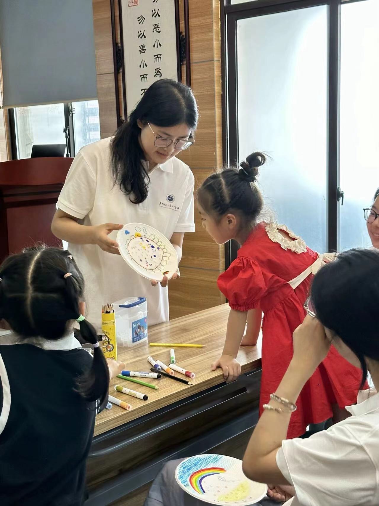 7月6日,武汉队第一天以一场名为“心理游园会”的科普活动,拉开了系列活动的序幕。活动现场,五彩斑斓的布置和丰富多彩的互动环节吸引了众多小学生及其家长的参与。本次活动向孩子们展示了前沿的心理科技设备,如脑电帽和测谎仪,还包含Stroop测试、短时记忆测试等经典心理学测试,以及想象力绘画、突破固定认知的趣味游戏和制作漆扇的传统手工艺体验。