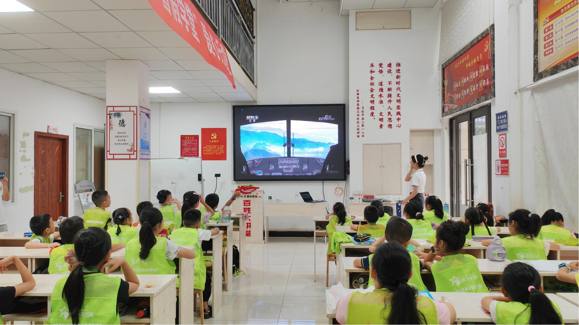 在金色城市社区,实践队成员播放了《航拍中国》湖北篇的纪录片,展示无人机航拍的美丽画面,通过无人机的视角,感受中华大地的壮丽山河。队员们还对无人机的常见分类、应用领域以及飞行安全进行了详细讲解,并通过互动提问的方式,让孩子们积极参与到学习中来。