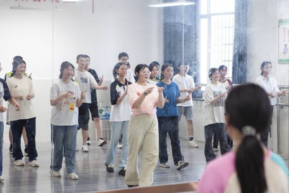 华大青年讯(通讯员 郭星怡 罗亚欣 金传倩)为丰富校园文化生活,进一步发挥美育与体育的育人价值,塑造健康、积极、向上的学子精神风貌,7月4日至14日,华中师范大学人工智能教育学部“智远同心”实践队赤壁分队(以下简称“赤壁队”)在湖北省赤壁市官塘驿镇中学开展了以“舞动青春,逐梦前行”为主题的活力舞蹈系列课程,课程分为三个主题,分别以《阳光男孩,阳光女孩》《像你这样的朋友》《快乐崇拜》三首歌曲为背景音乐进行舞蹈编排,赤壁队队员金传倩担任舞蹈教师。