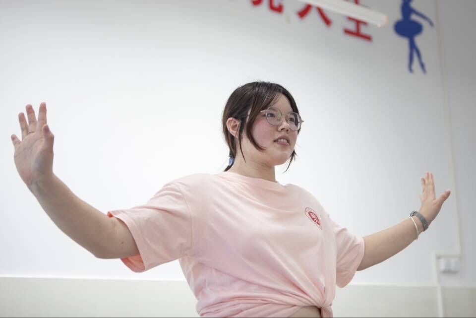 课程伊始,金传倩以教学舞蹈的歌曲背景和歌词意义作为导入,引导学生理解每首歌曲所传递的积极情感与人生哲理。随后,她带领学生们进行全身运动、拉伸练习,帮助学生们充分活动身体,预防运动伤害。教学环节中,从基础的舞步到完整的舞蹈动作,金传倩耐心指导每一个学生,确保他们都能跟上节奏,享受舞蹈的乐趣。