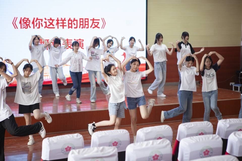 在《阳光男孩,阳光女孩》的舞蹈中,学生们展现了阳光、自信的一面,每个人都活力四射,舞蹈动作充满了力量感。通过舞蹈学习,学生们能够感受到身体的律动与音乐的和谐共鸣,从而培养自信、乐观的生活态度,展现青少年的青春活力与风采。而在《像你这样的朋友》的舞蹈中,学生们通过舒缓的肢体语言,传达出友谊的温暖。金传倩在舞蹈编排中融入互动元素,鼓励学生们相互配合、协调一致,共同完成舞蹈表演。在最后的《快乐崇拜》舞蹈中,学生们随着音乐的节奏舞动身体,在舞蹈中尽情释放自我,用舞蹈传递着快乐和正能量。