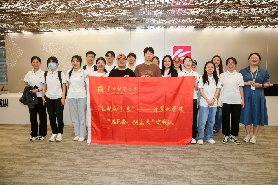 华大青年讯(通讯员 边琰 黄丝语 胡一凡)为积极响应“科教兴国”的国家战略部署,激发青年学子的科技创新潜能,华中师范大学计算机学院组建了“在E企,创未来”暑期社会实践队(以下简称“实践队”)进行实践活动。7月16日,计算机学院本科生辅导员赵丹与16名本研学生一起前往金山办公软件有限公司(以下简称“金山办公”)展开探访活动。