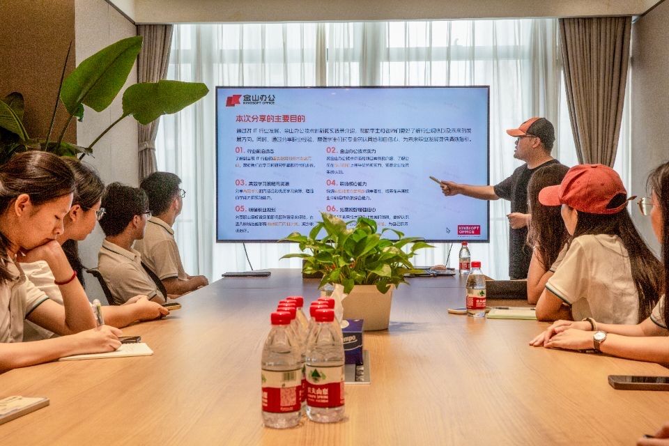 参观展厅结束后,金山办公招聘经理赵志梦为实践队成员介绍了金山办公企业相关情况,并讲解了金山办公举办的未来训练营的相关人才培养方案,帮助成员们进一步了解金山办公相关招聘事项。