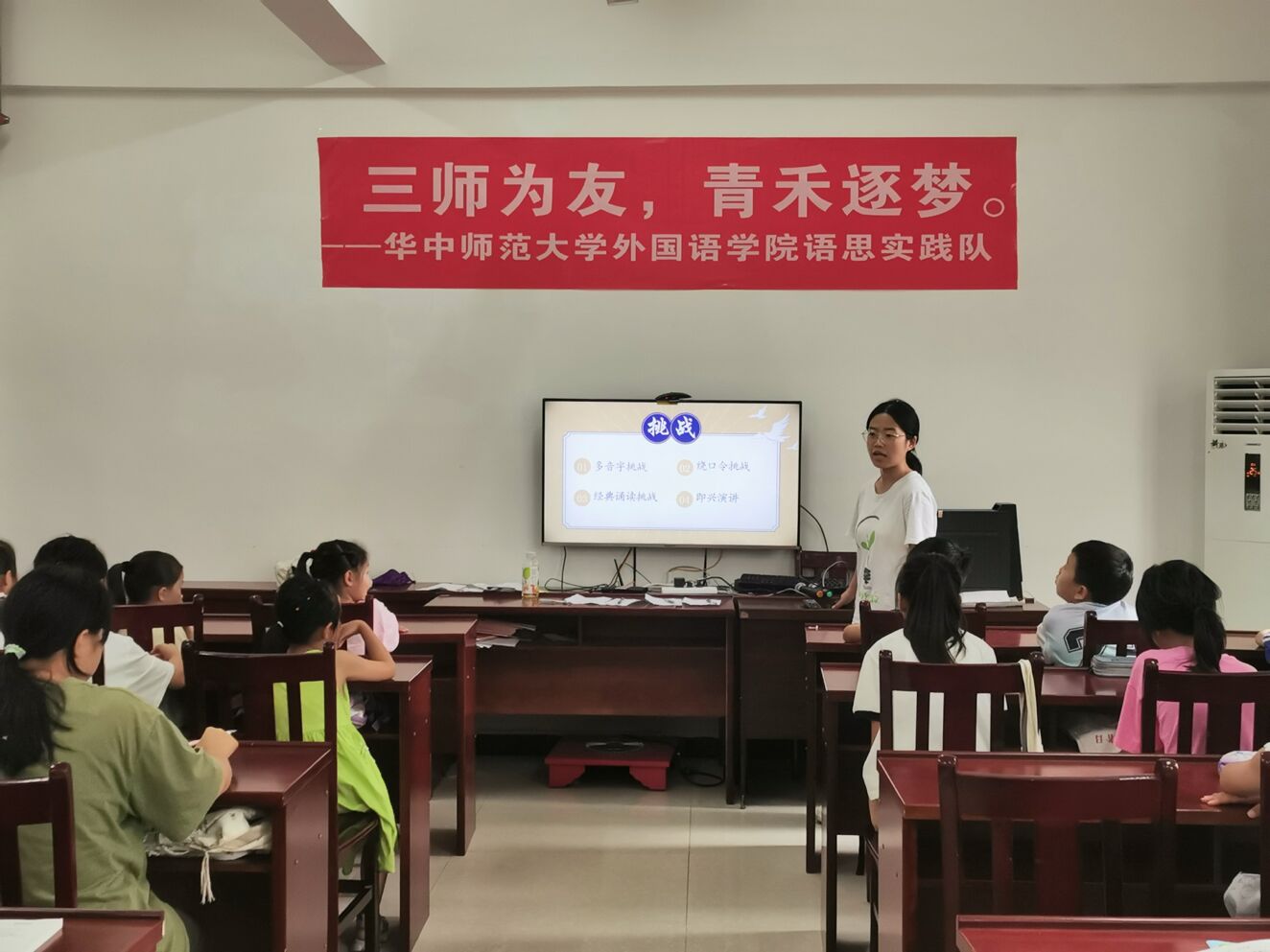 华大青年讯(通讯员 郑洁瑜)7月12日上午,语思(青禾)实践队恩施分队在湖北省恩施土家族苗族自治州宣恩县中坝社区举办趣味普通话比赛。本次活动是暑期推普实践的特色活动,面向当地儿童开展,旨在提升学习普通话的趣味性,提高国家通用语言文字推广普及在中坝社区的力度,铸牢中华民族共同体意识。