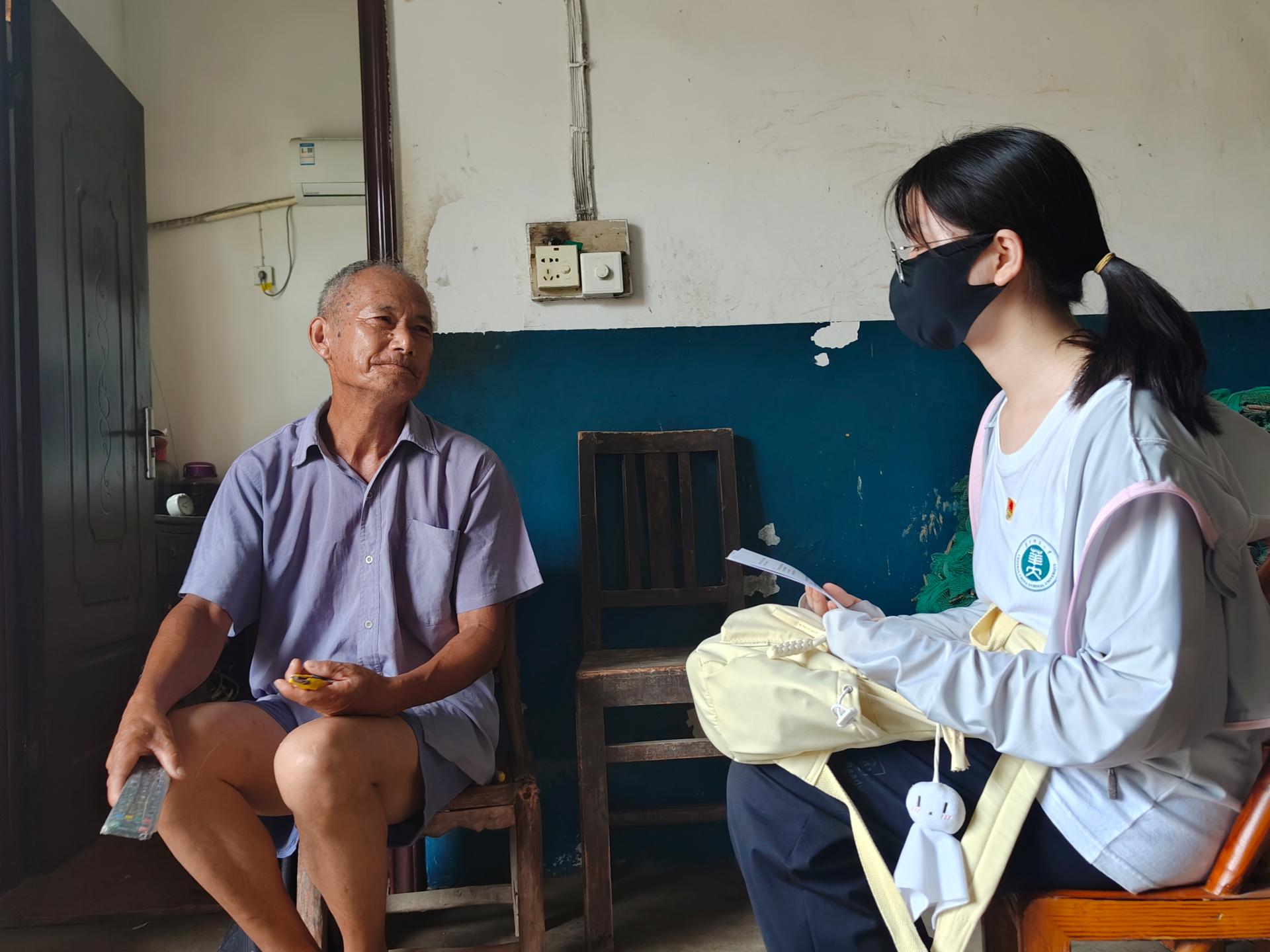 实践队队员路紫晗与老党员进行访谈