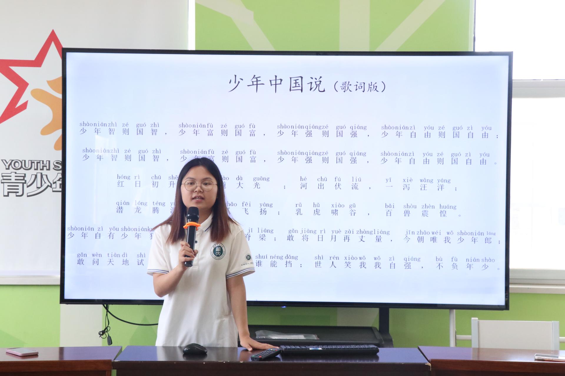 “少年智则国智,少年强则国强……”出自梁启超先生之手的激扬文字,跨越百年,与现代的音乐形式相碰撞,共同汇聚成一首大气恢弘的《少年中国说》。实践团成员带着孩子们朗诵《少年中国说》原文以及歌词,并从词曲角度出发对歌曲进行赏析,让孩子们在学会演唱歌曲的同时,进一步了解作词人的心境,体会其内心的情感。