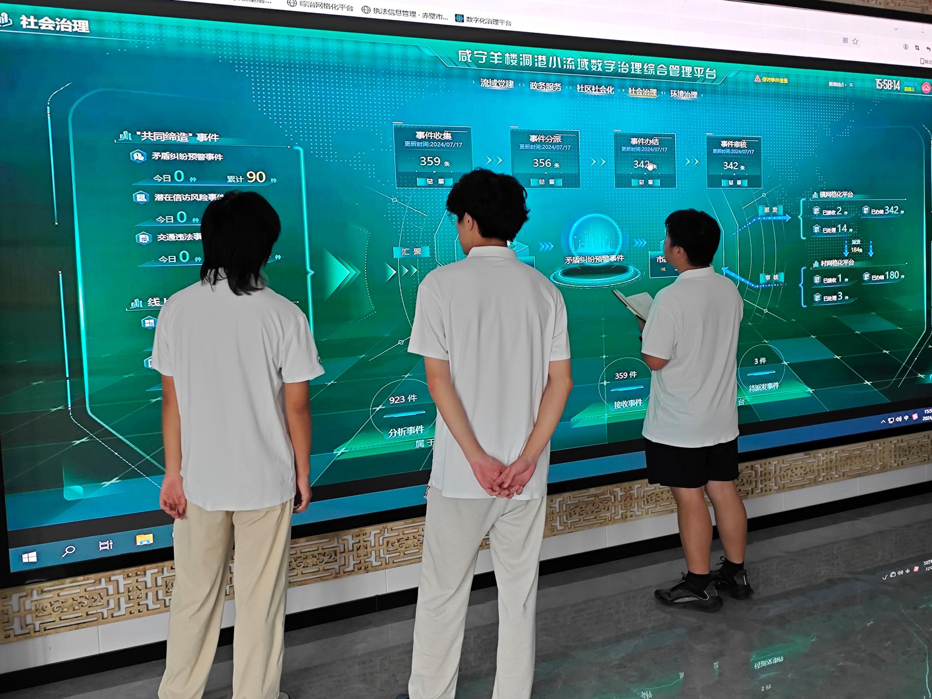 游柳江向调研组成员展示了咸宁羊楼洞港小流域数字治理综合管理平台。该平台在小流域治理中发挥了重要作用,其具备对流域内的各种数据进行实时监测和采集的功能,例如水质评定、水量测定、生态环境质量检测等。调研组成员郭佳明提出问题:该平台是仅负责处理小流域环境治理事务的吗?对此游柳江表示,该大数据平台是一个综合性的平台,除了环境治理,它还包含了政务服务、社会治理、流域党建等多种功能。他还特别指出,咸宁羊楼洞港小流域数字治理综合管理平台与微信小程序“有呼壁应”关联密切,用户通过该小程序向平台反馈问题与意见,后台会根据实时更新的数据进行相关事务的处理。