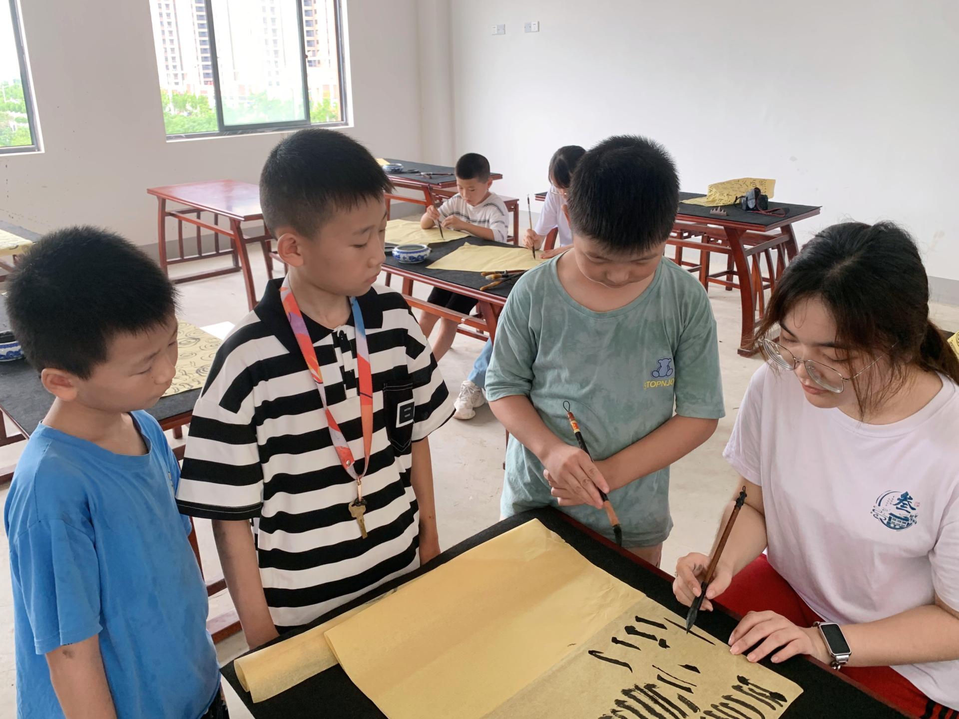 华大青年讯(通讯员 叶涵 李宁)汉字和以汉字为载体的中国书法是中华民族的文化瑰宝,是人类文明的宝贵财富。书法教育对培养孩子们的书写能力、审美能力和文化品质具有重要作用。为在实践中激发学生的艺术兴趣,在知行合一中陶冶学生的审美情操,促进心灵与技艺的双重成长,7月11日至18日,华中师范大学历史文化学院萤火服务队在湖北省孝感市孝昌县关王小学开展书法艺术课程。课程由萤火服务队队员裴芸露和何芳菲共同教授。