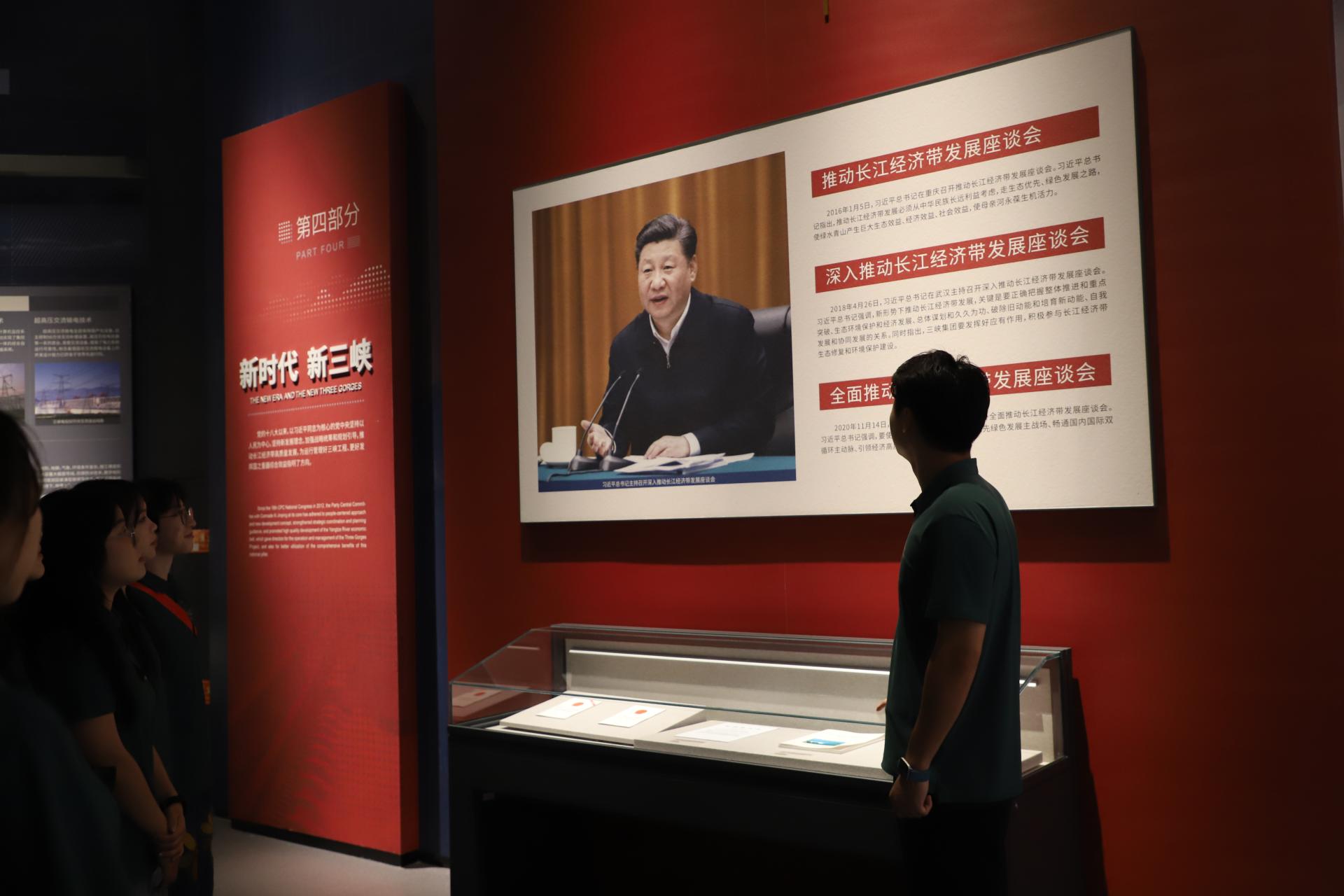 三峡大坝始建于1994年,控制流域面积约100万平方千米,集防洪、发电、航运、水资源利用等为一体,是当今世界上最大的水利枢纽建筑之一。2018年4月24日,习近平总书记来到三峡大坝,详细了解三峡工程建设、发电、水利、通航、生态保护等方面的情况时指出:“真正的大国重器,一定要掌握在自己手里。核心技术、关键技术,化缘是化不来的,要靠自己拼搏。三峡工程的成功建成和运转,使多少代中国人开发和利用三峡资源的梦想变为现实,成为改革开放以来我国发展的重要标志。”7月13日,实践队成员来到三峡大坝,参观三峡工程博物馆,学习习近平总书记关于推动长江经济带高质量发展的理论,体悟创新对于发展的引领作用。