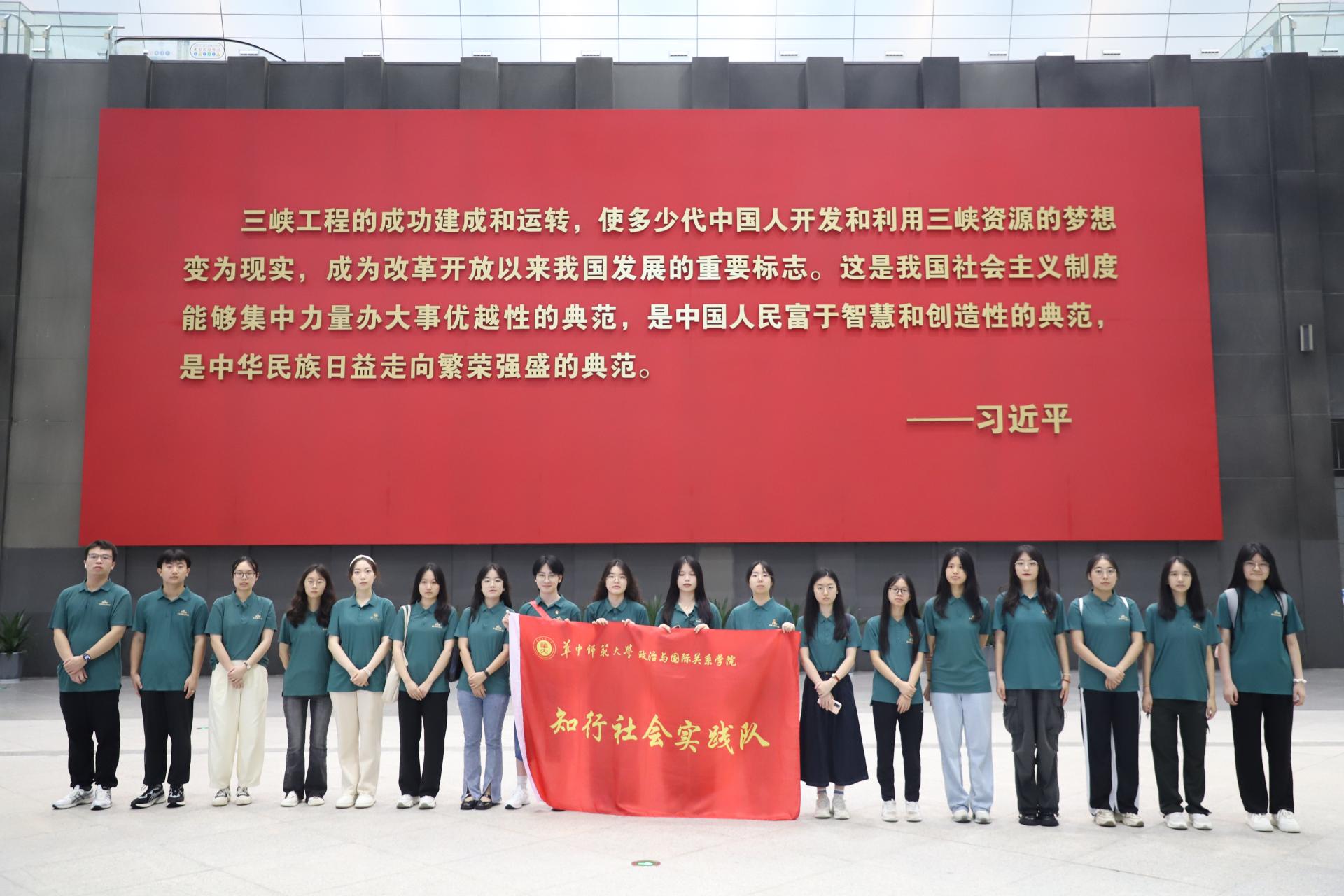 华大青年讯(通讯员 陈舒文)为深入学习宣传贯彻习近平新时代中国特色社会主义思想和党的二十大精神,追随总书记足迹,感悟新时代发展,7月11日至14日,政治与国际关系学院(以下简称:政国)“知行”社会实践队先后前往宜昌市三峡大坝和枝江市太平溪镇许家冲村,重走总书记考察湖北时的路线,体悟中国式现代化新篇章。