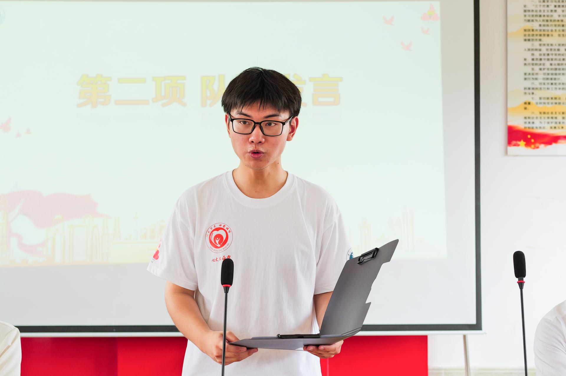最后,全体志愿者面向团旗,高擎右手,庄重宣誓,进一步坚定支教初心。未来,白霓队队员将以饱满的热情投入到本次支教活动中,积极践行志愿服务精神,为乡村青少年的健康发展保驾护航,助力留守儿童的茁壮成长和祖国教育事业的健全发展。
