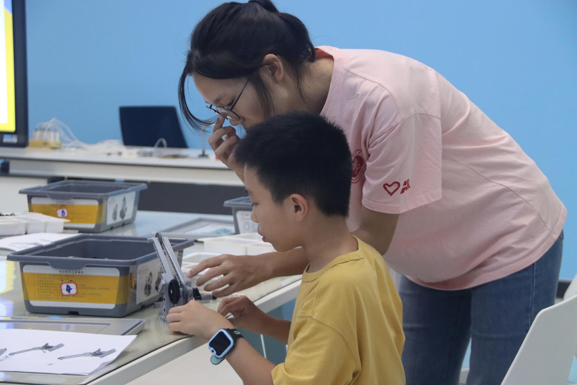 图3 陈琦帆协助学生拼搭
