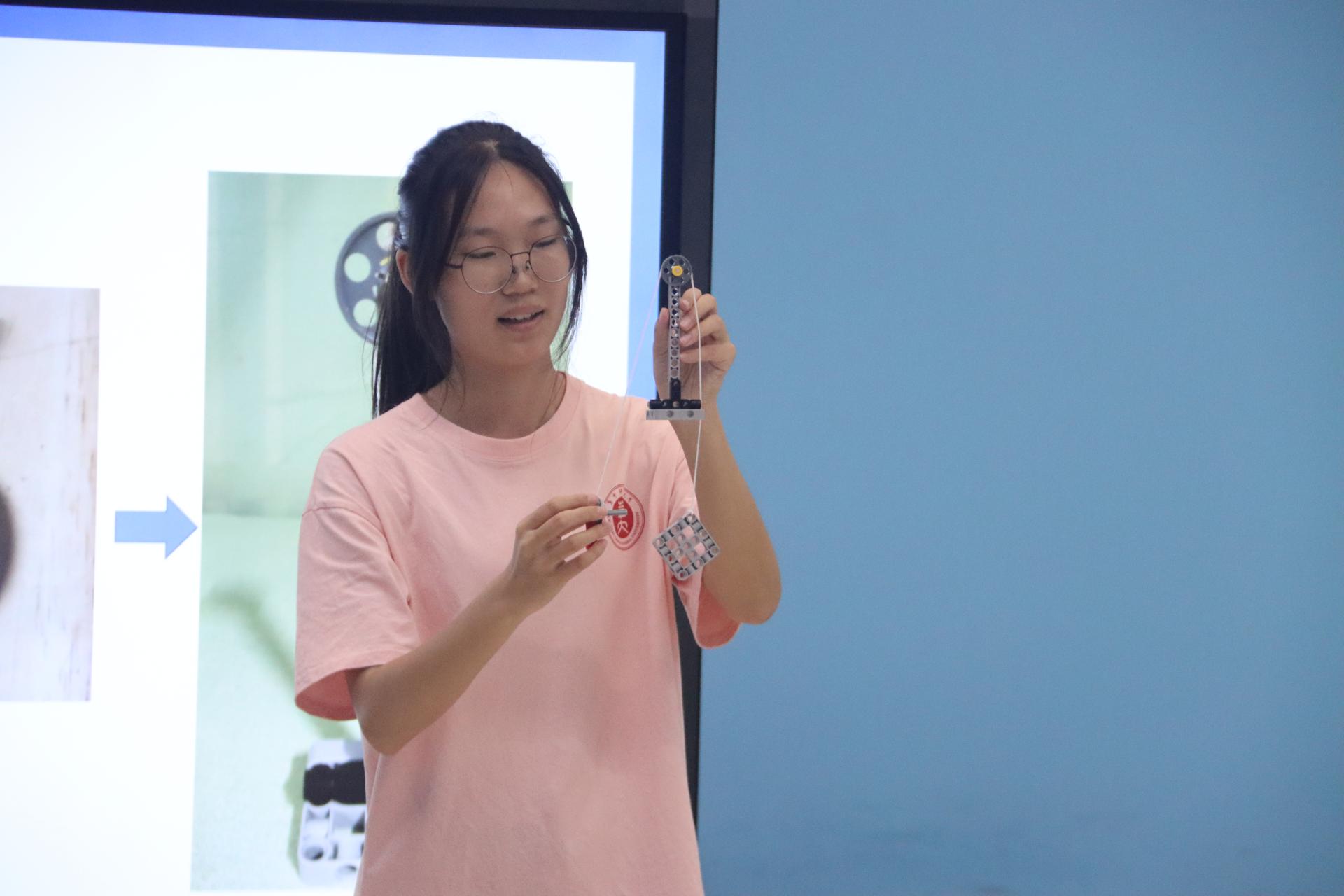 华大青年讯(通讯员 陈琦帆)为进一步培养青少年科学素养,提高学生动手实践能力和科学探究能力,打造拼搭实验探究新体验,华中师范大学人工智能教育学部智远同心科技馆队(以下简称科技馆队)于7月17日下午在湖北省科技馆开展了智趣拼搭特色课程。本次课程主题为“起重机——定滑轮的妙用”,共有16名青少年参与课程,科技馆队成员陈琦帆担任主讲人。