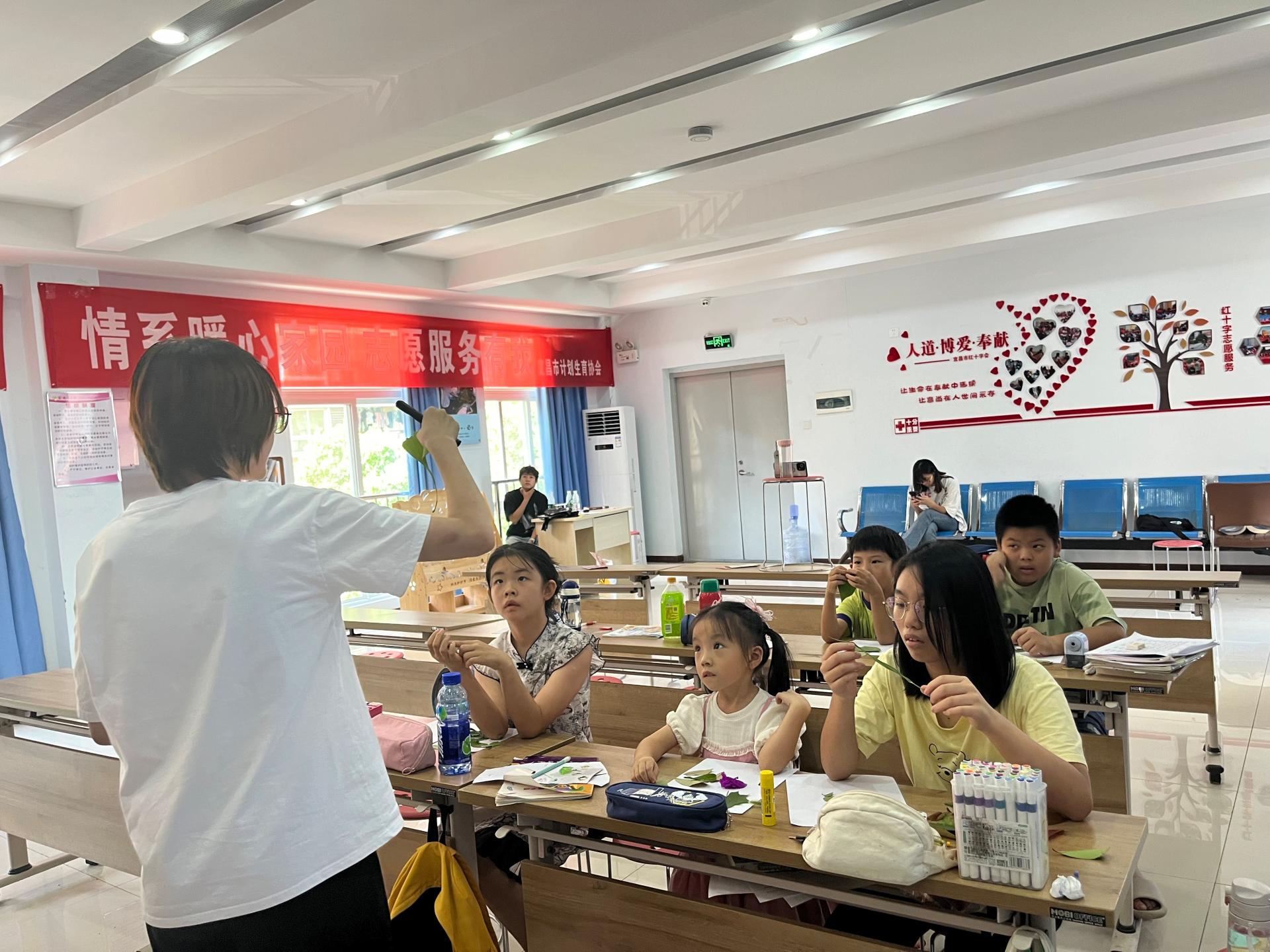 华大青年讯(通讯员 韩宝珠)为进一步践行自然美育教育理念,帮助孩子亲近自然、了解自然、体验自然,让他们从小养成保护自然的意识和习惯,培育他们对生态美的欣赏与创新能力,7月18日,华中师范大学生命科学学院偕行筑梦团宜昌点军队(以下简称“点军队”)在宜昌市点军区五龙社区“希望家园·暑假学堂”开展手工课——“植物拼图”。点军队队员韩宝珠担任主讲人。
