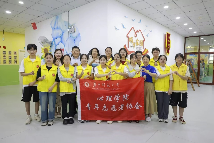 华大青年讯(通讯员 胡静 崔建敏 孙淏喆)7月15日下午,华中师范大学心理学院党委副书记丁玉斌、团委书记温碧璇带领华中师范大学心理学院青年志愿者协会实践队走进武汉市蜗牛家园,开展了以“心蕾守护,星辰启航”为主题的心理助学活动。本次活动旨在给孤独症儿童带来关怀与呵护,让他们在成长的道路上感受到温暖与支持。丁玉斌和温碧璇与蜗牛家园的负责人进行了深入的交谈,了解了孩子们的情况。他们也参与到志愿者的心理课堂中,对志愿者们进行了指导和鼓励,为后续社会实践的深入开展指明了方向。