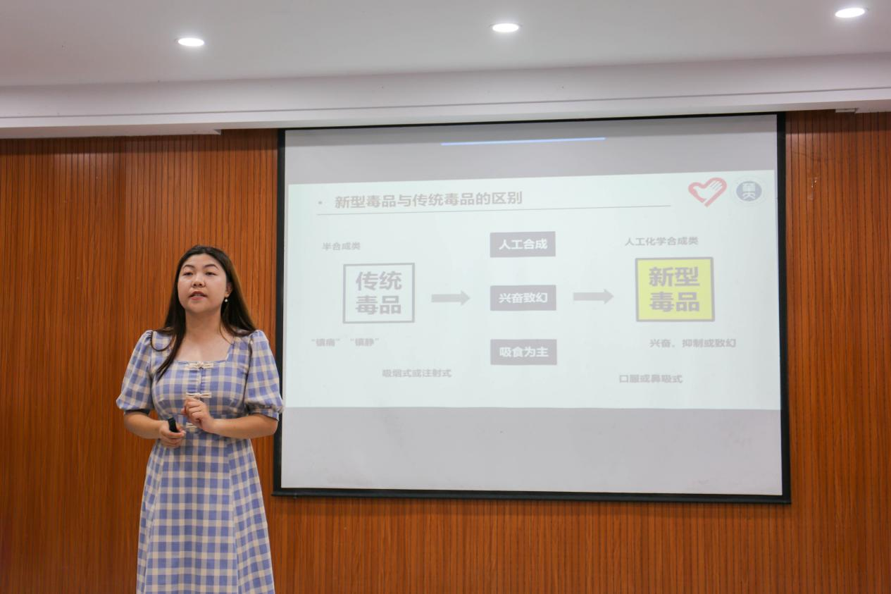 活动伊始,法伴青春志愿服务队成员陈嘉怡向同学们科普有关毒品的知识,对什么是毒品、毒品的演变、毒品对人的危害以及涉毒违反了哪些法律法规等知识进行了讲解。在互动环节,学生们积极举手回答,现场气氛高涨。