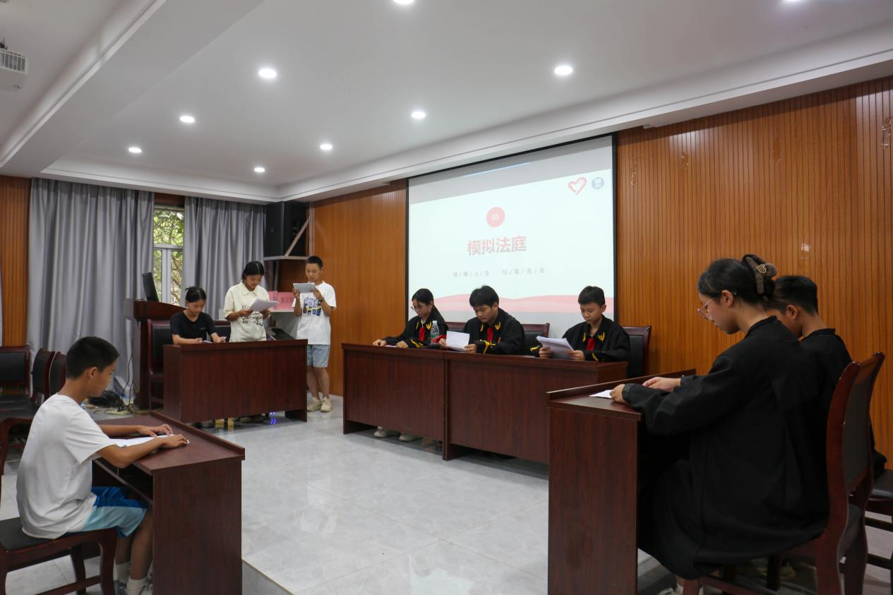 华大青年讯(通讯员 卢丽鸿)为进一步加强对未成年人的禁毒普法宣传教育力度,提高未成年人自觉抵制毒品的意识与自我保护能力,牢固树立法治观念,构建安全无毒的校园环境,7月18日,法学院法伴青春志愿服务队在资市中学排演了一场以“拒绝毒品诱惑,护航美好未来”为主题的模拟法庭情景剧,让全体学生在寓教于乐的沉浸式体验中学习相关法律的知识。