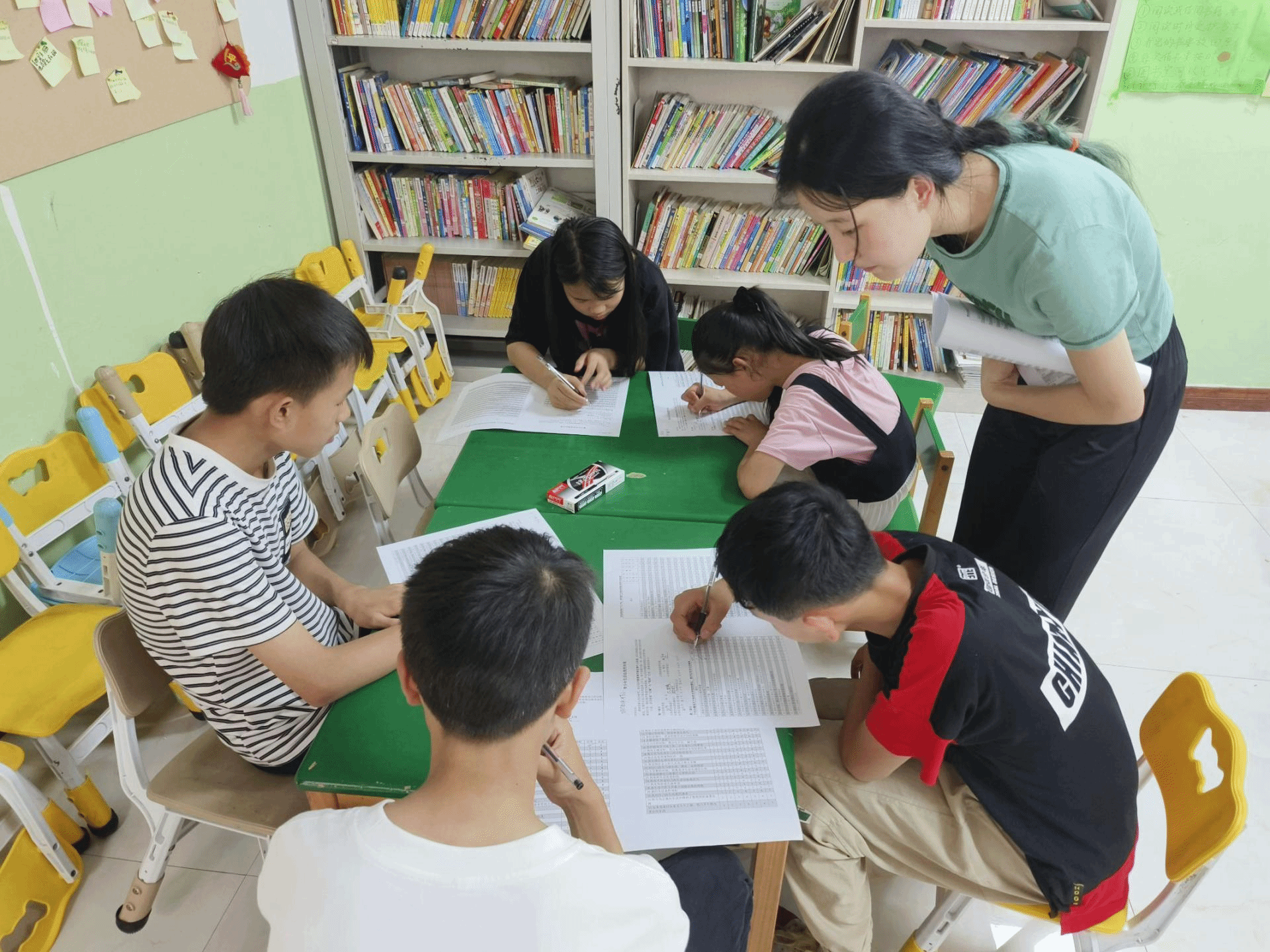 志愿者们深知考察事实无人抚养儿童心理健康状况及影响因素至关重要。开营仪式结束后,志愿者们展开对事实无人抚养儿童心理健康状况的调研工作。通过轻松愉快的聊天,志愿者们与孩子们建立起信任和沟通的桥梁,倾听他们的心声,了解他们的内心世界和成长环境。