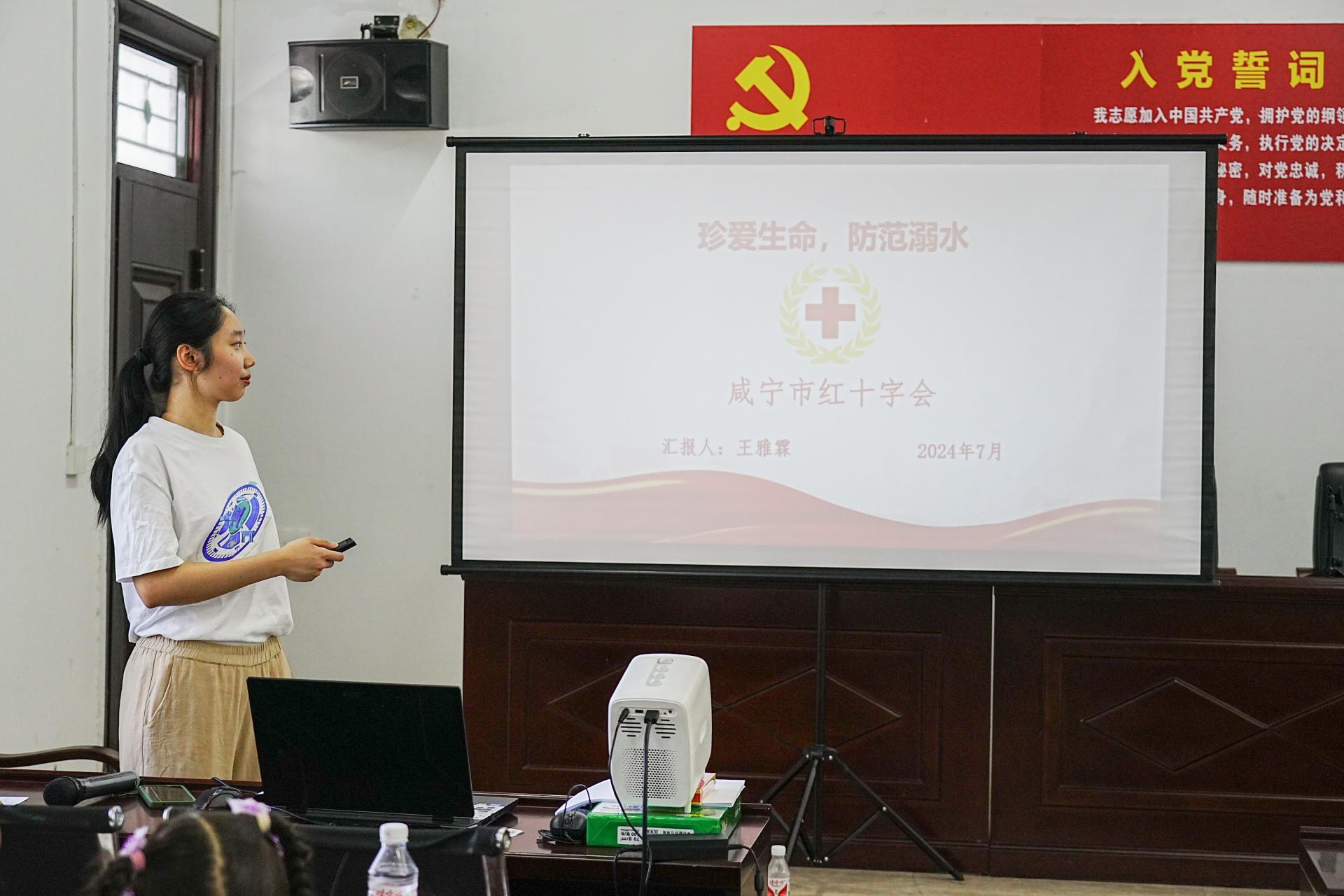 宝塔山村位于湖北省赤壁市柳山湖镇东南部,稻虾共作是全村移民主要经济收入来源之一,村中多池塘、稻田,溺水事故易发。受咸宁市红十字会所托,实践队队员王雅霖特别准备了主题为“珍爱生命 远离溺水”的水域安全宣传教育活动,为同学们详细讲解了防溺水的安全要点、注意事项、如何第一时间自救、如何互救等知识,并提醒孩子们不要到河边玩耍、游泳,不要接近危险水域,严防意外事故的发生。
