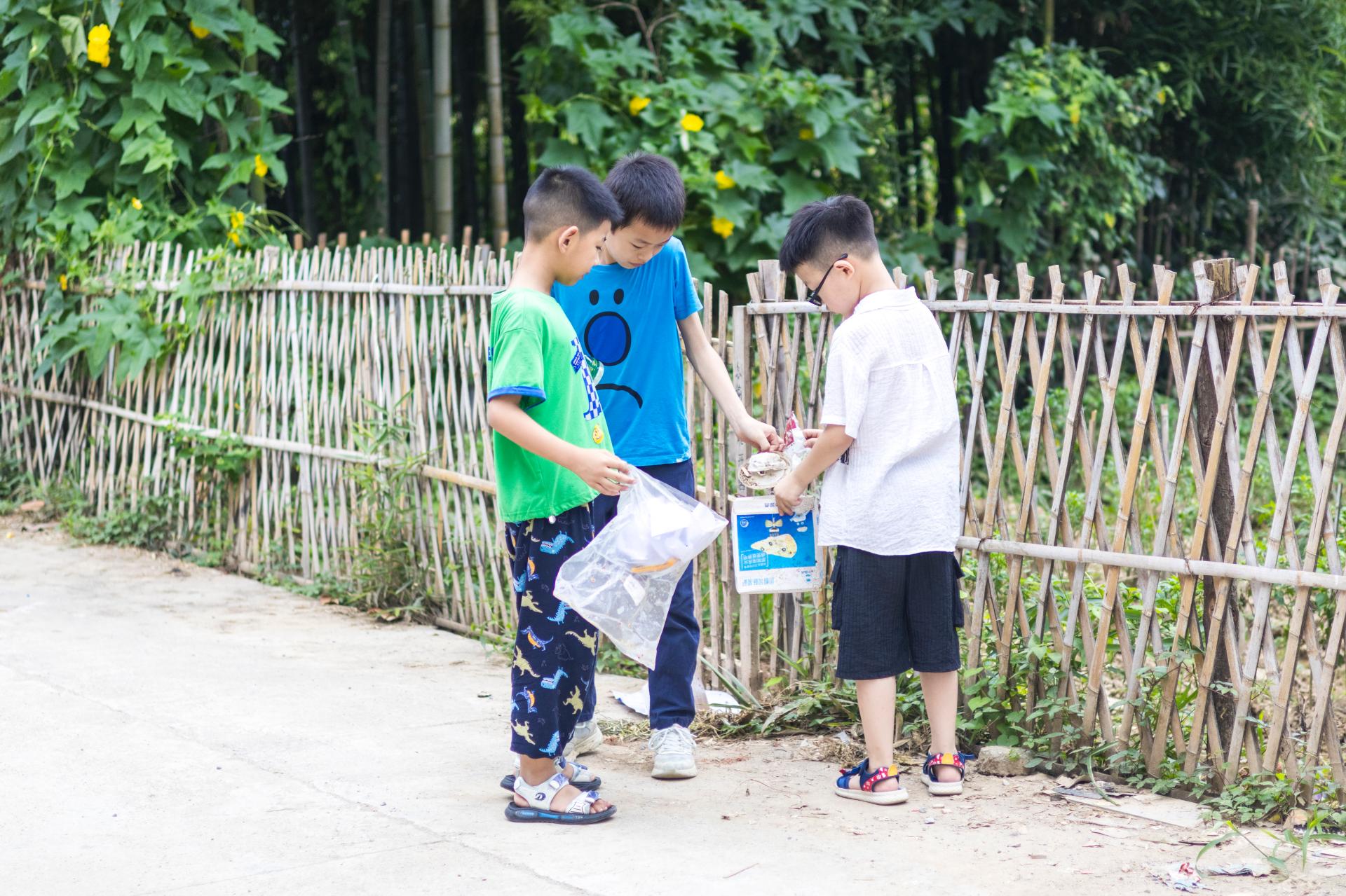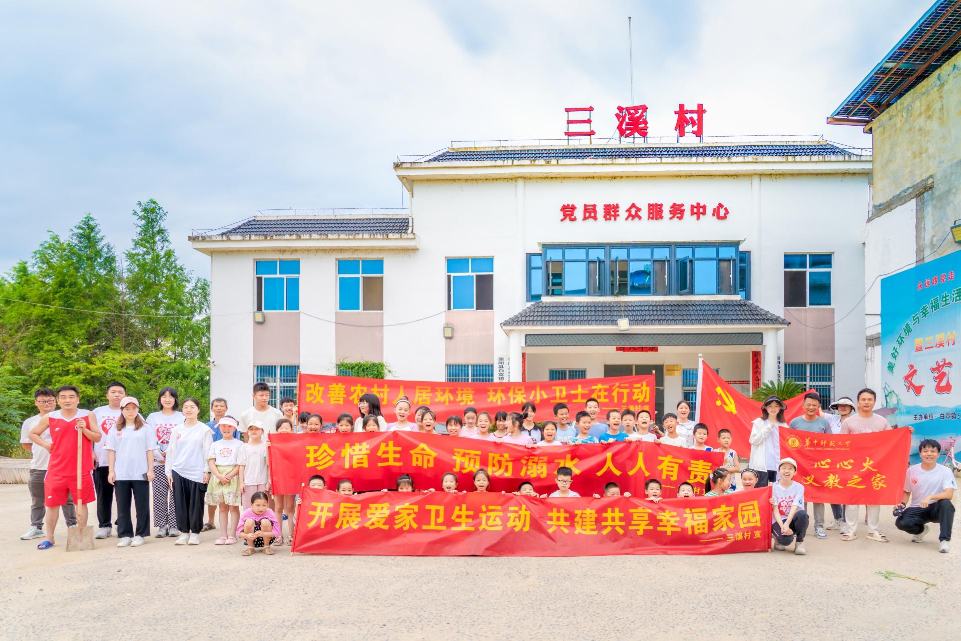 华大青年讯(通讯员 王冬瑾 马思涵 肖扬 孟晨轩)为提升广大青少年的生态文明意识和素养,深化生态文明教育,7月20日上午,三溪村举办以“大手牵小手,小手促大手”为主题的清洁家园活动。在三溪村党支部书记饶冠军的带领下,三溪村所有村干部、年轻党员、预备党员和入党积极分子,华中师范大学外国语学院心火支教团白霓队(以下简称“白霓队”)三溪村分队全体队员和“暑假学堂”的78名学生共同参与。