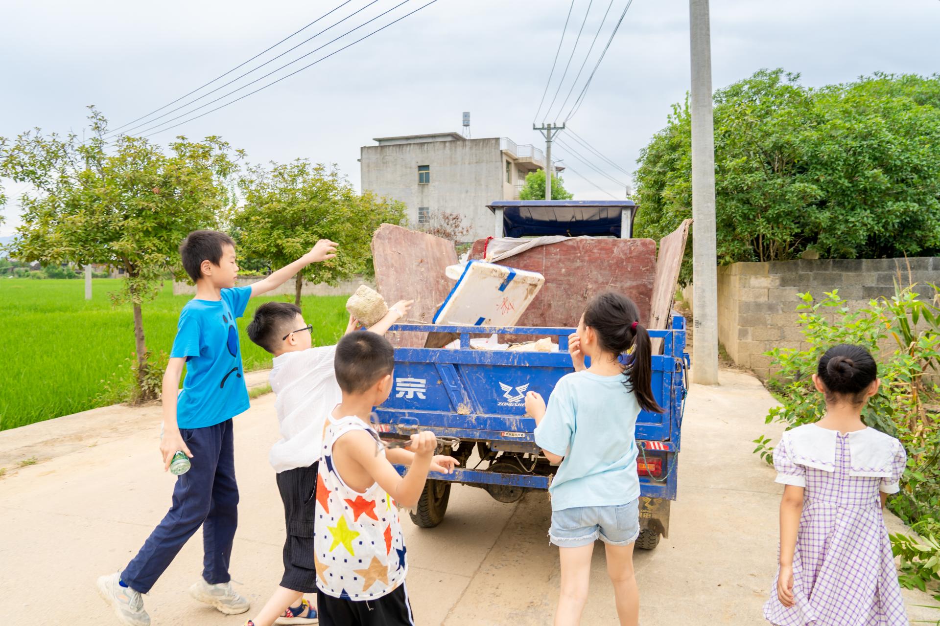 学员们将垃圾扔进垃圾车
