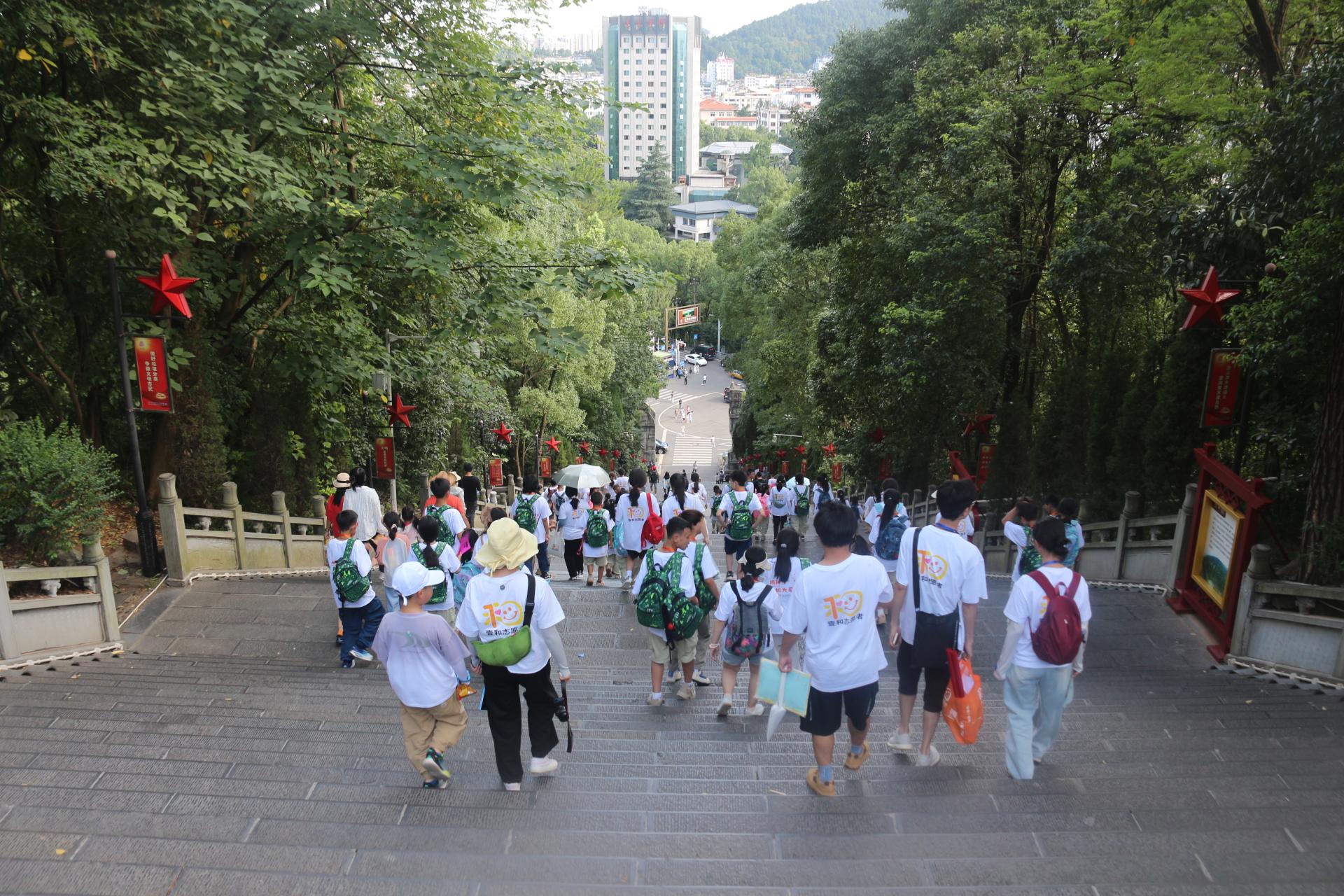 当天下午,孩子们在益童前行队队员的陪同下,怀着好奇与期待来到了红军山脚下。与以往的户外活动不同,此次攀登之路被巧妙设计成了知识与体魄的双重考验。沿途设置了三个关卡点,每个关卡点都藏匿着100道与党史、红军长征历史、英雄人物事迹、遵义会议等革命历史紧密相关的题目,等待着小攀登者们的解答。活动规则简单却能很好地起到激励作用——每答对一题,孩子们所在的小组即可获得5元钱,作为晚餐经费,这意味着答对题目的数量直接关联到晚餐的丰盛程度。这样的设计不仅激发了孩子们学习革命历史的热情,更促使他们团结协作,共同面对挑战。