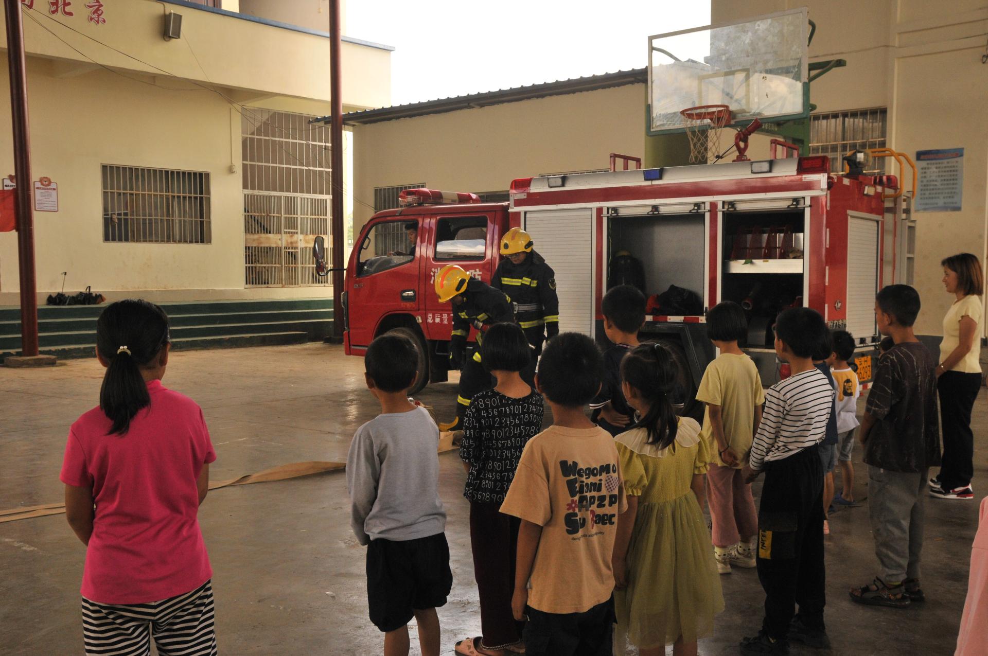 23日下午,老师讲解完活动流程后,安全文化节正式开始。首先,老师引领学生至室外的空旷地带,此时消防队员也开着消防车抵达。他们展示了出水操和两分钟迅速穿戴装备,结合实物介绍了消防车的结构和消防救生器材,向学生讲解了消防知识,进行了灭火演示。在了解消防救生工作的过程中,学生们对消防员这一职业有了更多的认识,也产生了许多敬意,明白了生命可贵的深刻含义,更加主动地了解安全知识。
