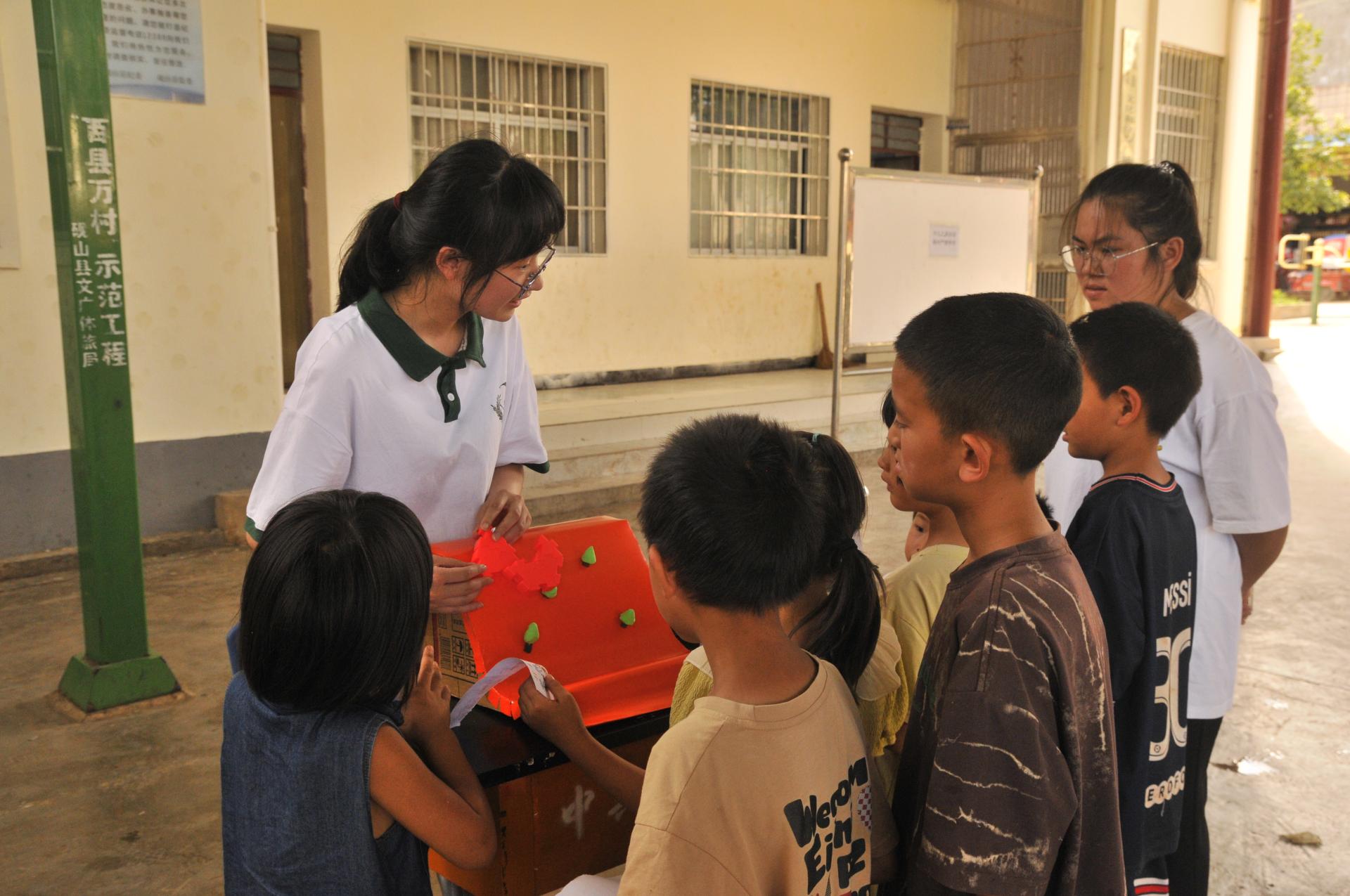 为了向探科村儿童普及安全知识,让孩子们习得如何预防与应对自然灾害和意外的发生,提高其自我保护能力,聆杉实践队队员们设计了消防安全、预防溺水、交通安全、地质灾害四个版块的活动。活动包括场景模拟、知识讲解、抽签问答等环节,以摊位打卡为主要形式,旨在充分调动学生的兴趣与积极性。