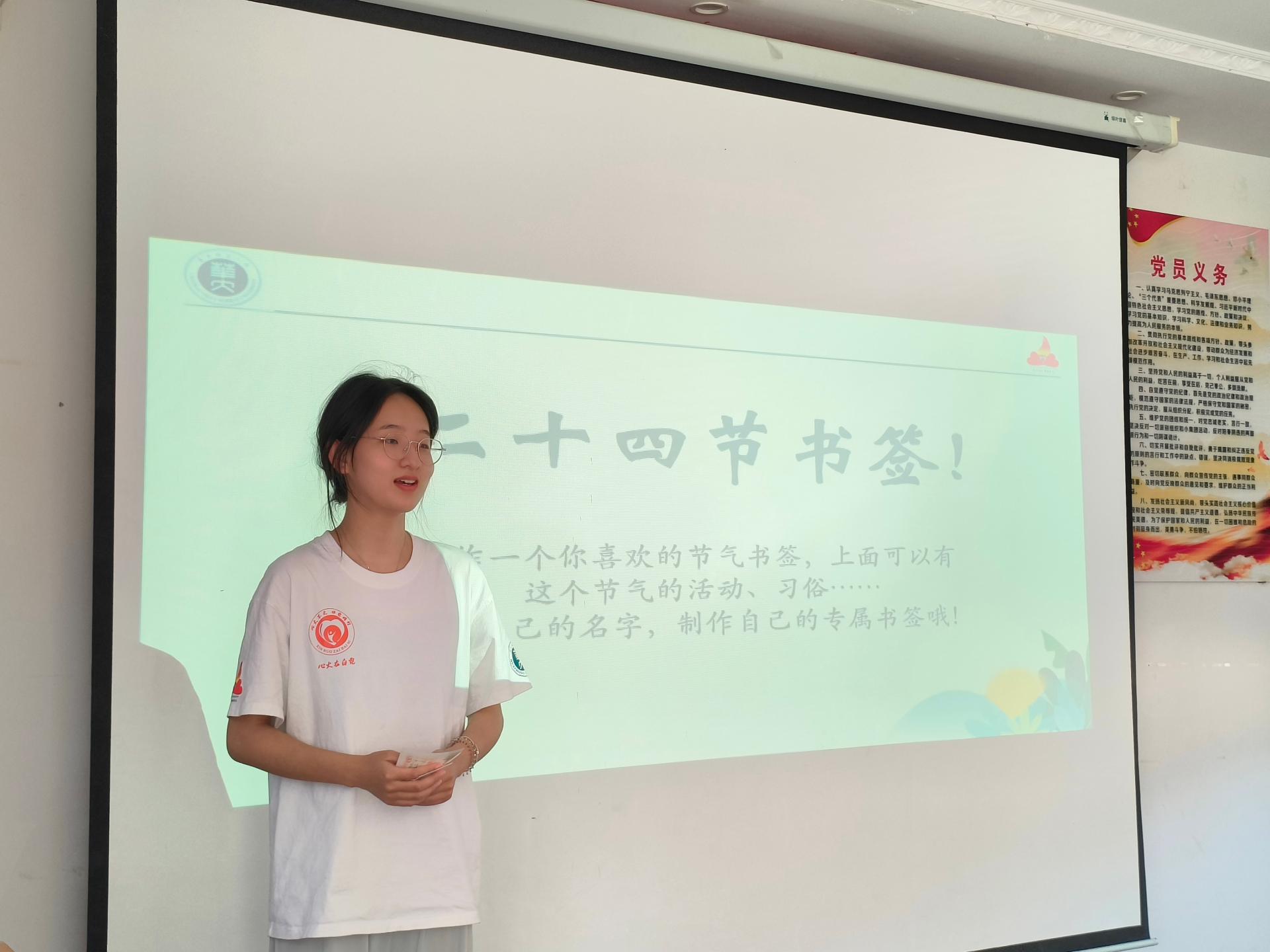 在第三课时,马铭继续带领学生们遨游于节气的海洋,深入探索夏、秋、冬三季节气的奥秘。通过互动学习、小组讨论,学员们不仅掌握了每个节气的独特之处,还发挥创意,亲手设计并制作了节气书签,将这份对自然的敬畏与对文化的热爱凝聚于方寸之间。