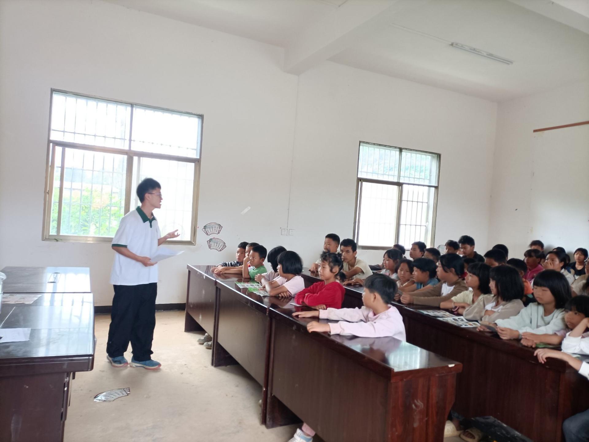 华大青年讯(通讯员 林雅妍)7月24至25日,华中师范大学心理学院聆杉实践队(以下简称“聆杉实践队”)于云南省文山壮族苗族自治州砚山县探科村进行了三次调研活动。为扩大服务范围,聆杉实践队队员们以盘龙社区“少年儿童之家”为中心,前往一字桥新寨村、明德村和拖支白村,遵循“安全课堂+心理健康课堂+调研活动”的模式进行流动服务。队员们响应政府预防学生溺水工作,进行防溺水教育,并对学生们进行心理健康测评,有针对性地开展心理健康课程,守护农村儿童健康成长。