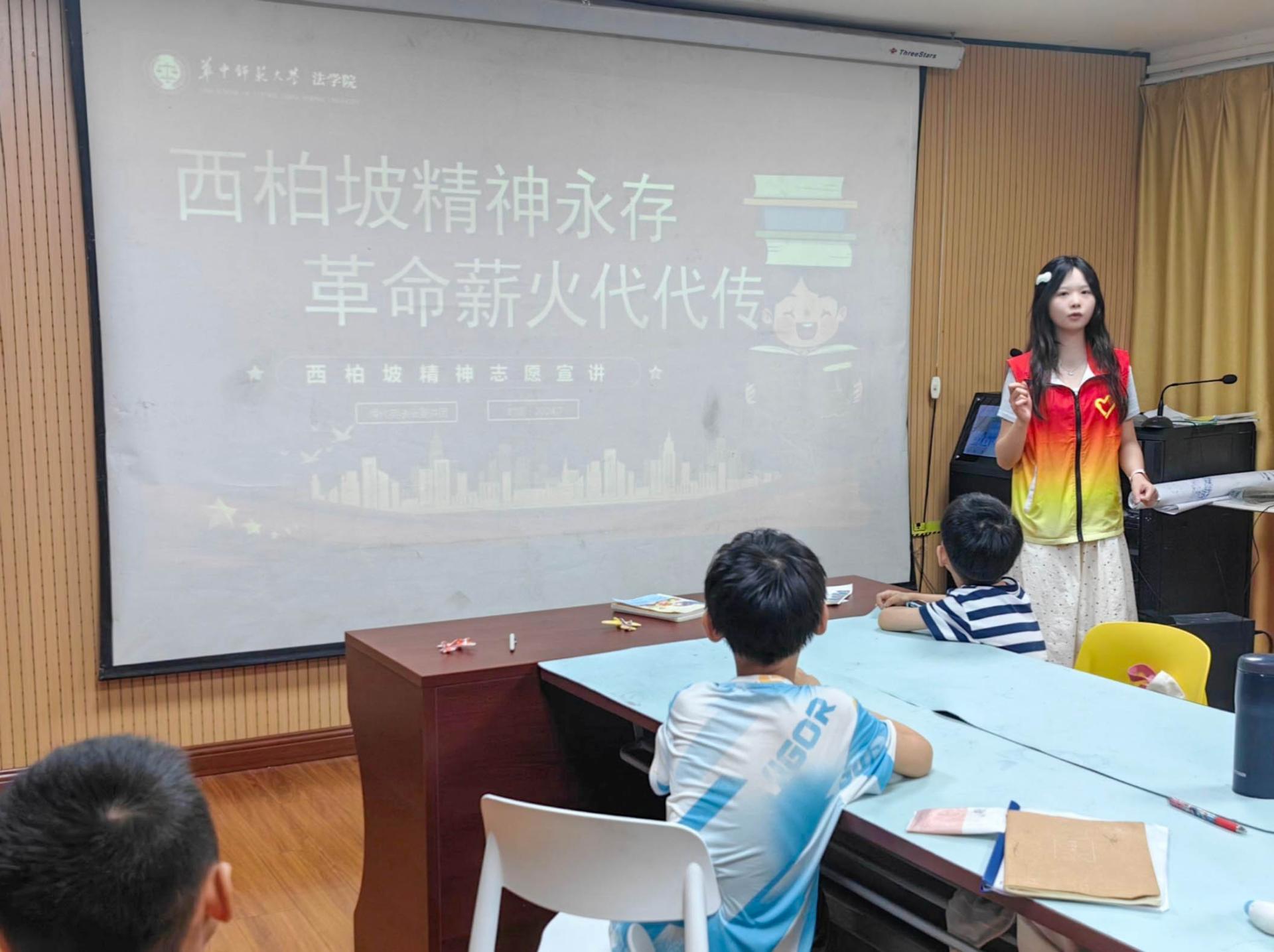 华大青年讯(通讯员 李畇霄)为加强对青少年的红色教育,培养青少年对红色文化的深厚情感和社会责任感,7月24日,法学院“法护成长”实践团(以下简称“实践团”)积极响应号召,依托专业优势,走进武汉市融侨华府社区,开展以“传承红色基因,感悟精神伟力”为主题的红色教育活动。实践团成员通过讲述革命前辈的英勇事迹,引导社区儿童深入了解红色历史,激发他们对红色基因的认同感和使命感。