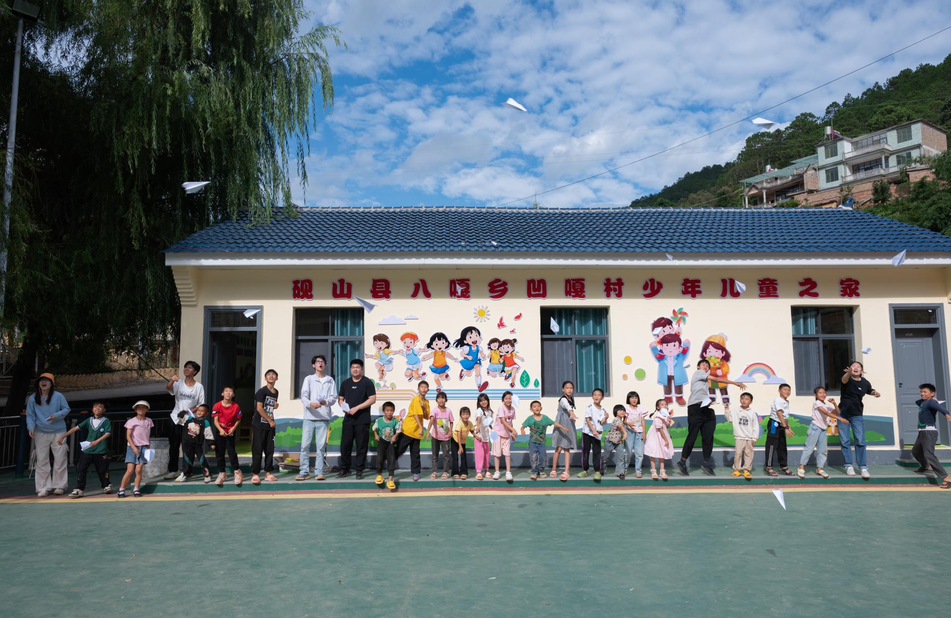 图2 聆杉实践队队员和同学们一起放飞纸飞机