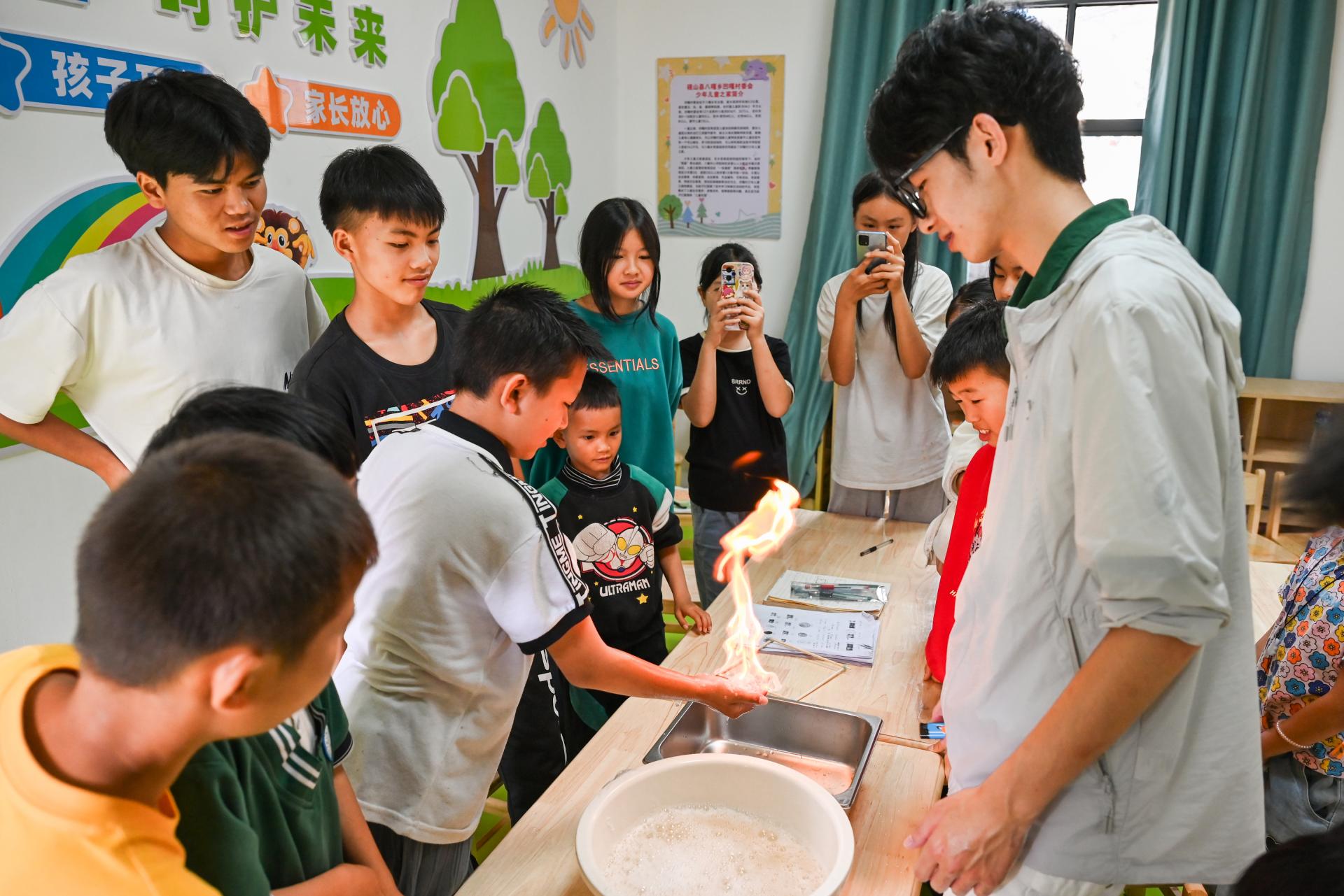华大青年讯(通讯员 刘腾飞)7月26日,云南省文山壮族苗族自治州砚山县凹嘎村“烛光夏令营”支教活动迎来了第七天的课程。为培养学生们的科学意识,提高学生们的综合素质,给孩子们带去关爱和乐趣,华中师范大学心理学院聆杉实践队(以下简称“聆杉实践队”)为学生们准备了走近科学等课程,并开设了音乐社、科学社、手工社等社团。
