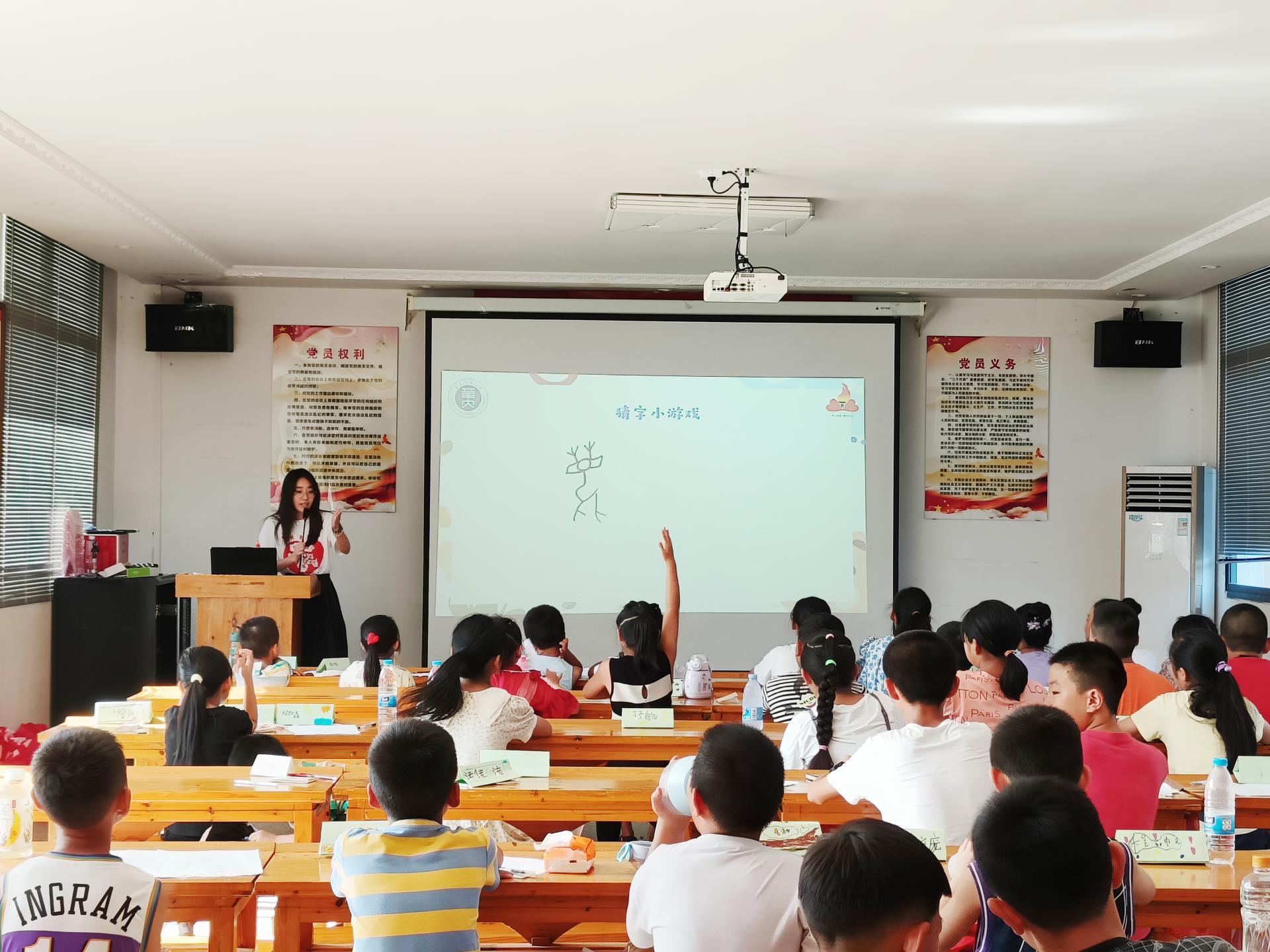华大青年讯(通讯员 孔繁荣 刘琰 张政豪 钟瑷忆 马思涵)为使学员能全面深入地了解汉字的历史、结构和文化价值,帮助学员深入理解汉字文化的博大精深,培养青少年的文化自信和民族自豪感,7月22日至25日,华中师范大学外国语学院心火支教团白霓队(以下简称“白霓队”)以传统汉字文化为主题,于崇阳县白霓镇大市村开展“汉字奥秘”系列课程。白霓队队员孔繁荣担任主讲人。
