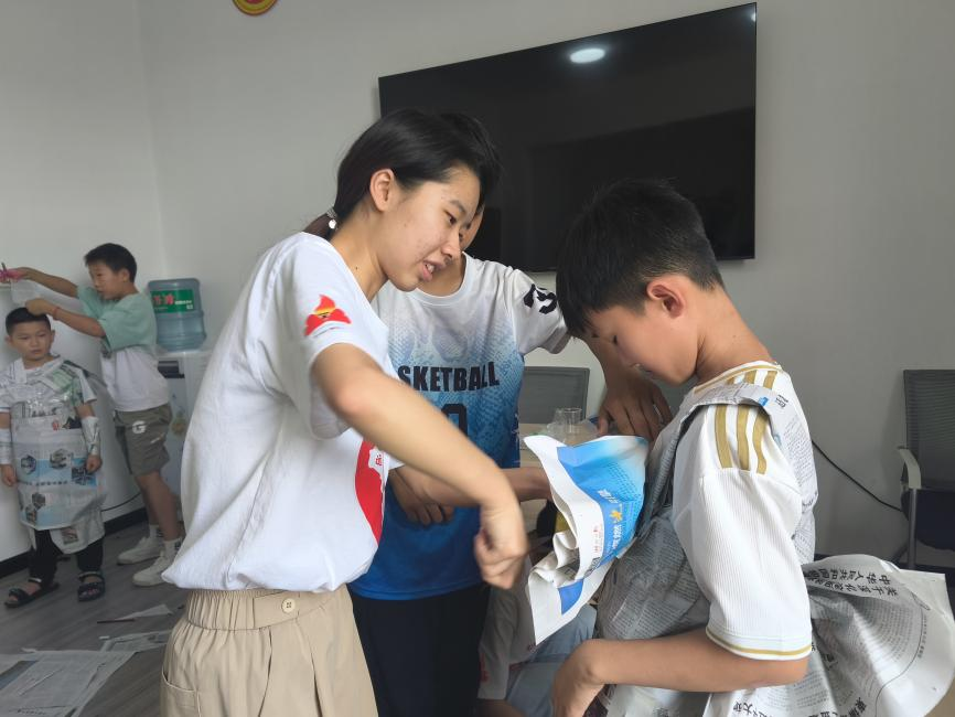 华大青年讯(通讯员 胡珂 孙锦超 包昕桐)为丰富学生课余生活,全面提升综合素质,7月24日,华中师范大学外国语学院心火支教团远安队(以下简称“远安队”)洋坪社区分队举办了主题为“废品变新装,环保美丽行”的特色活动。本次活动由志愿者老师郑炜君、胡珂、韩昕冉、龚雅琳主持,旨在引领学生走进环保的世界,用创意和行动点亮绿色生活的灯塔。