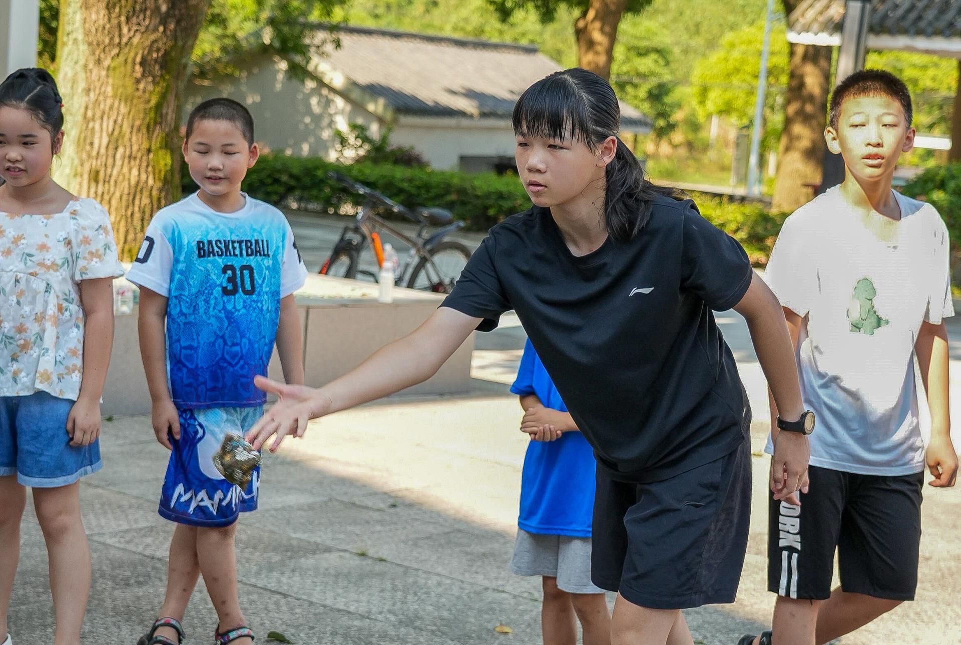 7月24日,在充分的准备活动后,学生迎来了一场别开生面的沙包比赛。实践队队员冯梓盈根据学生的年龄巧妙地设置了教学难度,将学生分为两组:一组组织了沙包投掷与躲避的游戏,另一组则是将沙包丢入到指定区域。整个教学过程中,冯梓盈始终关注每位学生的参与情况,及时给予指导和鼓励。学生在欢声笑语中不仅掌握了沙包投掷的技巧,还学会了在团队合作中相互支持与配合。