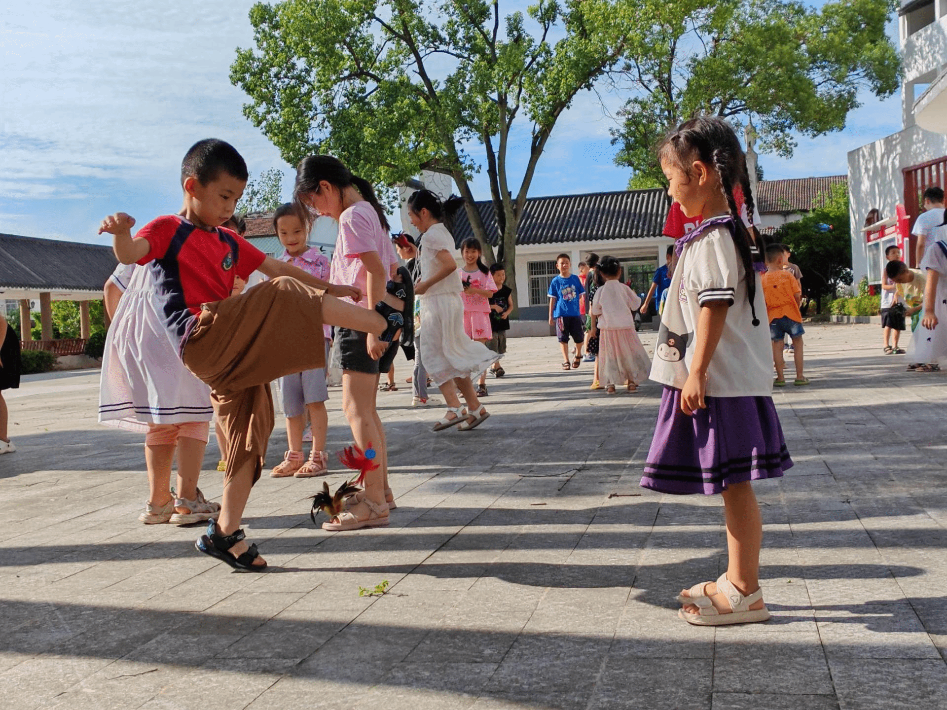 7月17日,实践队队员赵晨阳的《户外体育课:踢毽子》课堂上,他详细讲解了踢毽子的基本技巧,以流畅的动作向学生示范了脚内侧与脚尖的不同踢法。在赵晨阳的悉心引导下,学生迅速响应,分组练习,赵晨阳则巡回指导,逐一纠正动作。赵晨阳组织学生进行单人连续踢和双人对踢比赛,课堂氛围逐渐活跃。