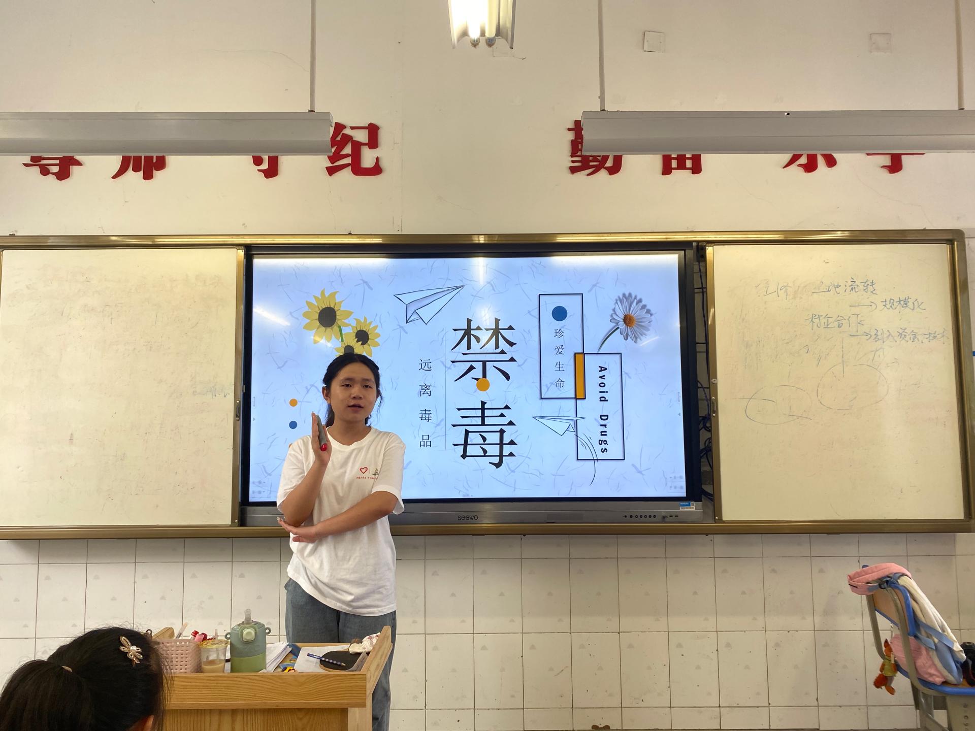 鉴于毒品的严重危害和青少年易受引诱的特点,加强青少年禁毒教育尤为重要。为此,实践团开设禁毒宣传教育,由实践团成员林婧带领同学们辨认常见的毒品种类并详细地介绍了吸食毒品带来的危害。通过本次的禁毒教育课程,同学们深刻地认识到毒品的危害性。