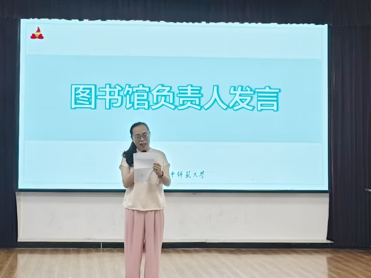 (图二 新洲区图书馆副研究馆员、辅导部主任张彩雯发言)