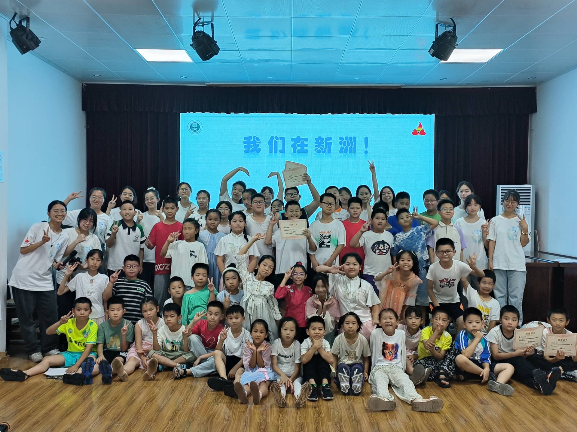华大青年讯(通讯员 曹媛媛 陈忱洁 何子晔)7月26日上午,华中师范大学外国语学院心火支教团新洲队(以下简称“新洲队”)在武汉市新洲区图书馆和章林社区开展文艺汇演暨结营仪式。新洲教育局阅读推广服务中心、邾城六小老师刘晓琳,新洲区图书馆副研究馆员、辅导部主任张彩雯,新洲区图书馆阅读推广部主任陈慧敏,武汉市新洲区启航社会工作服务中心负责人胡艳红,周欣书城负责人周文韬,周欣书城班主任谢冰倩,新洲区图书馆班主任谭洪艳与周欣书城工作人员章莉红出席,新洲队全体队员及学生参与此次活动。