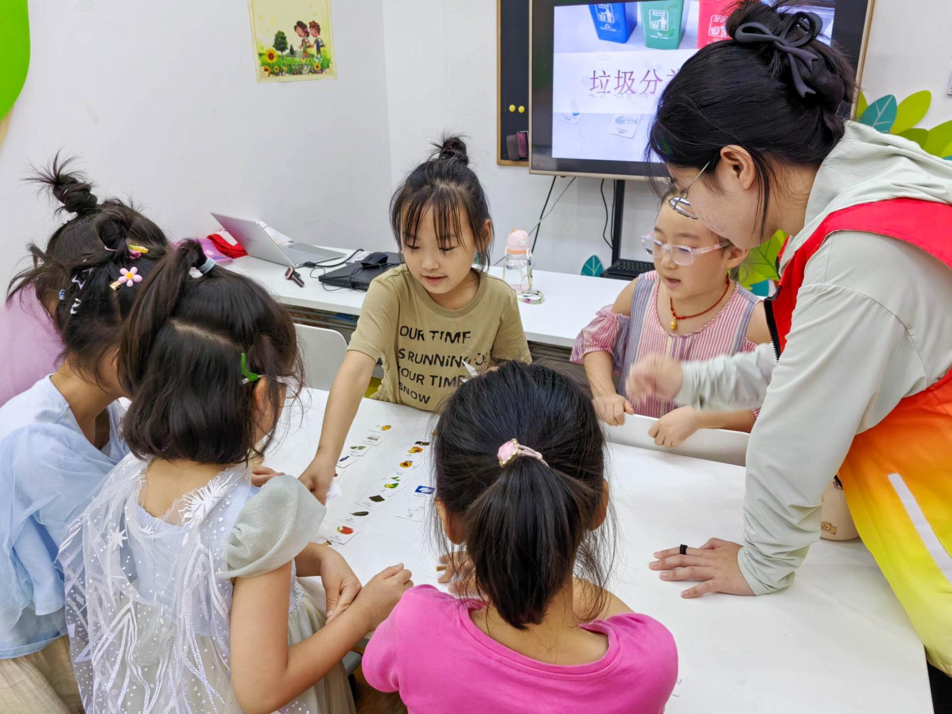 7月30日,实践团成员为社区的孩子们带来了一节环境保护小课堂。课堂开始前,实践团成员播放科普视频《动物联合国大会》,带领孩子们走进主题。通过图片展示,孩子们了解了目前的环境问题,学习了垃圾分类的相关知识。实践团成员还设计了一些趣味游戏,通过观摩实物、问题抢答等方式,让孩子们更快地融入课堂,从而更好地了解垃圾的分类方法和处理流程。