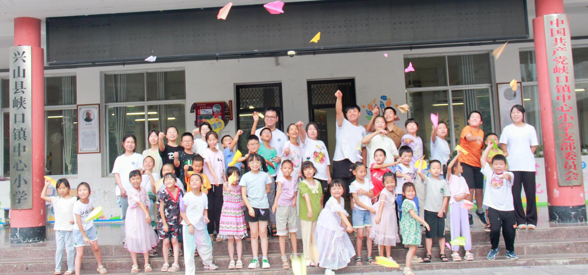 图一:志愿者与峡口镇小学小朋友合照