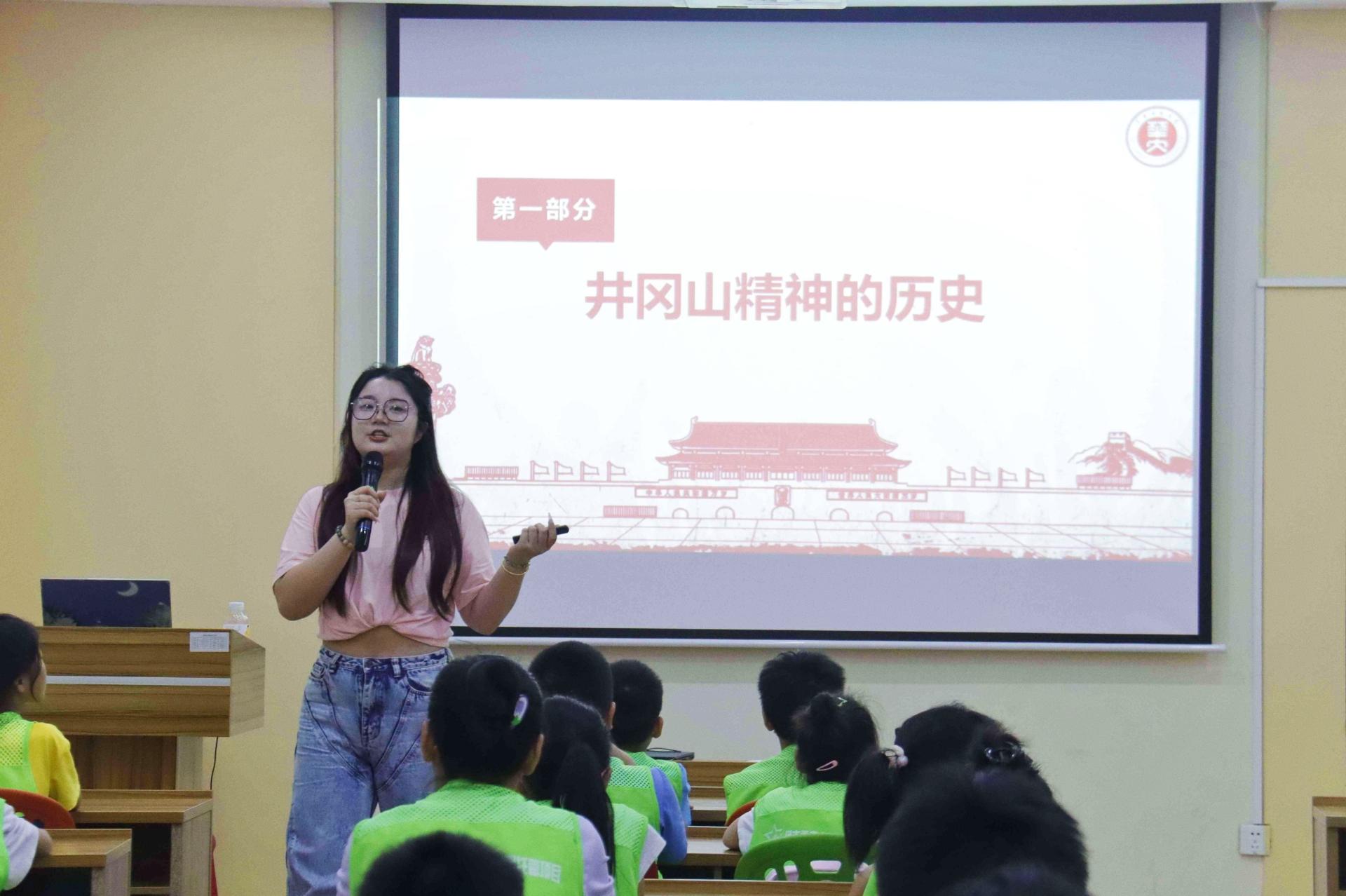 井冈山精神,作为中国共产党的伟大精神坐标,诞生于土地革命时期的井冈山根据地,并在新时代焕发出新的思想光芒。实践队队员张颖以《回望燎原星火,传承井冈山精神》为题开展微团课活动,她向学生深入剖析了中国共产党的诞生背景和独特性质,并通过中国共产党人的精神谱系,引出井冈山精神的丰富内涵,详细阐述了井冈山革命斗争的历史背景、现实意义及其闪耀的时代光辉。