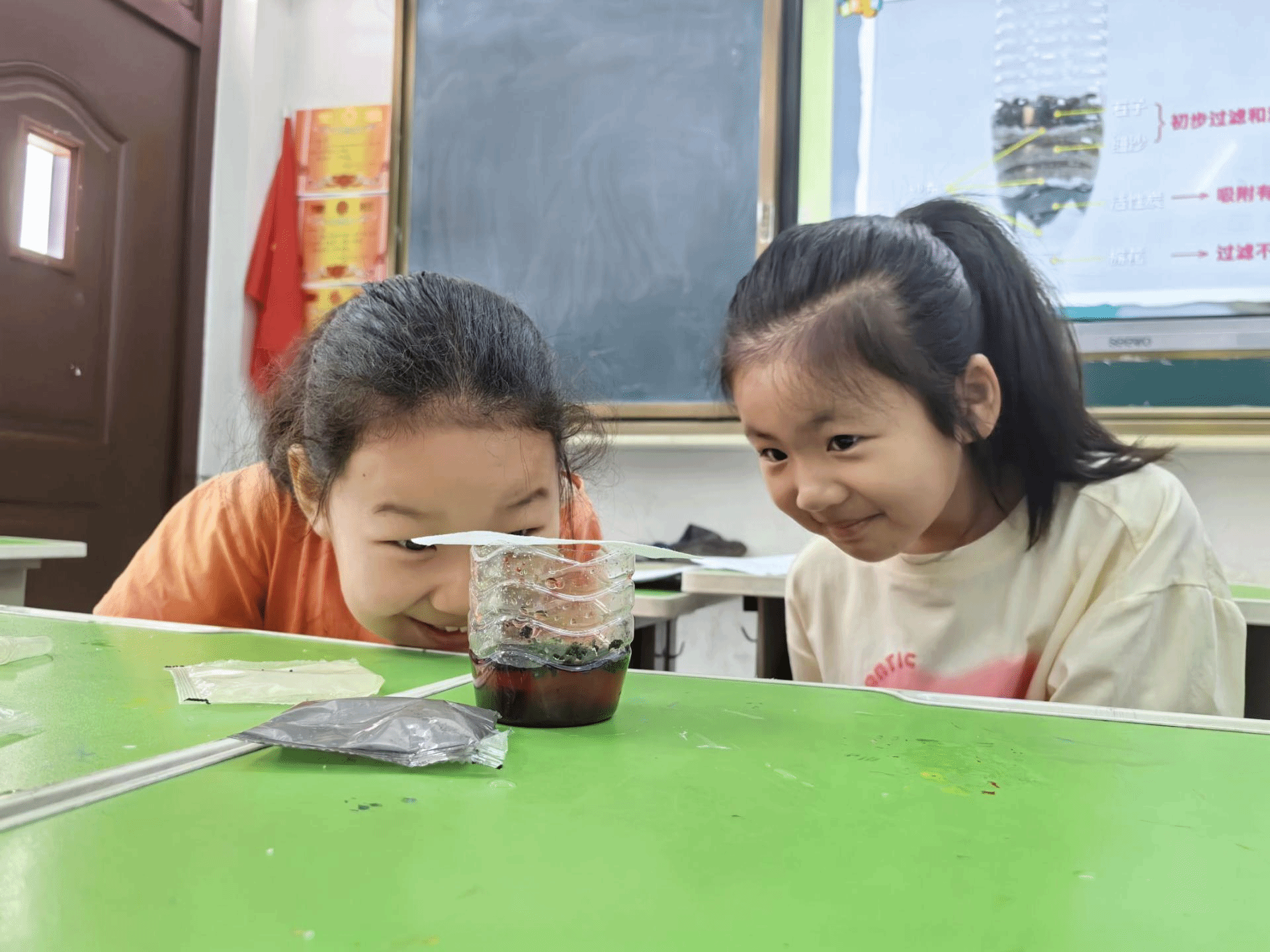 同学们听老师讲解净水步骤