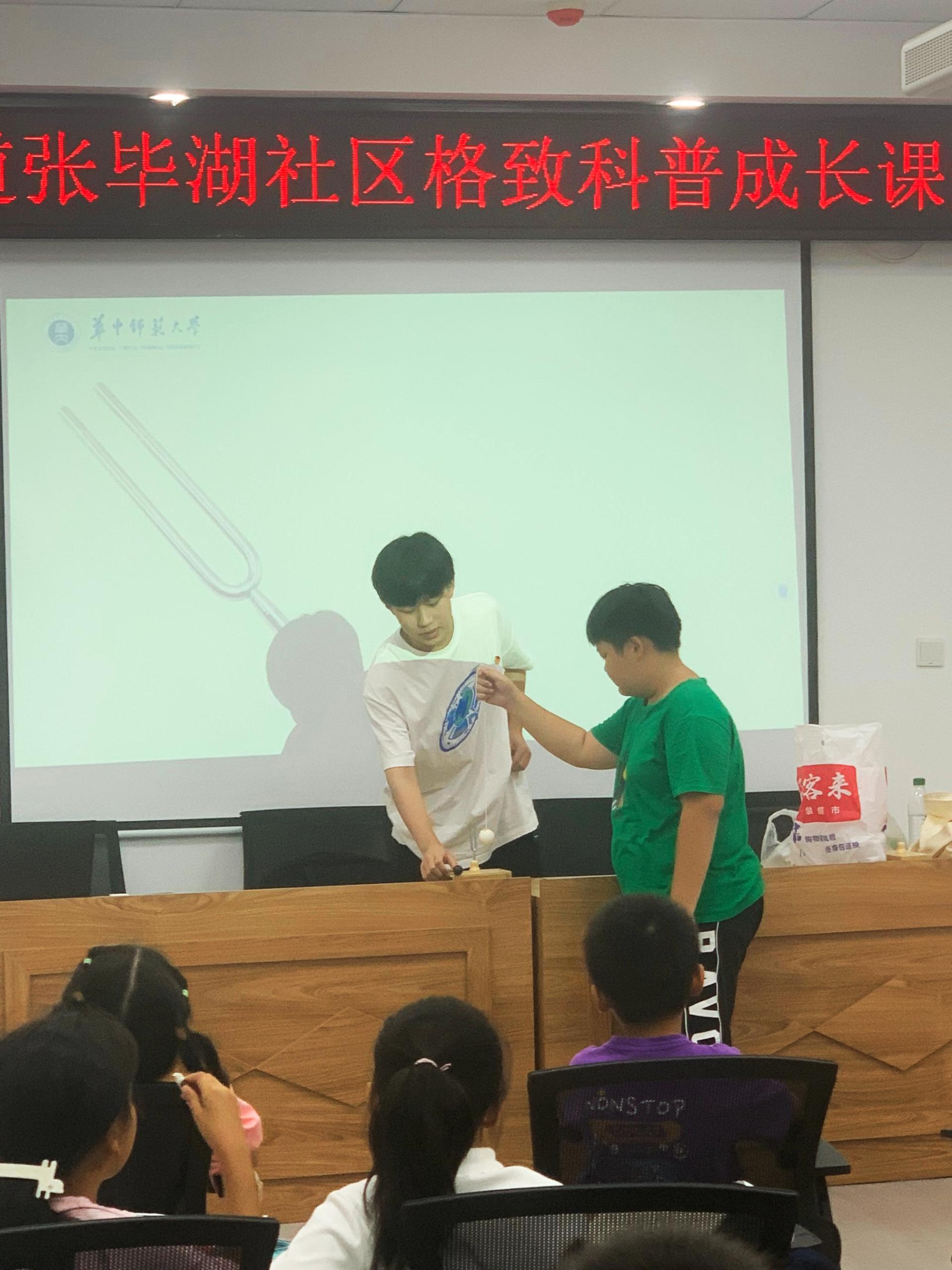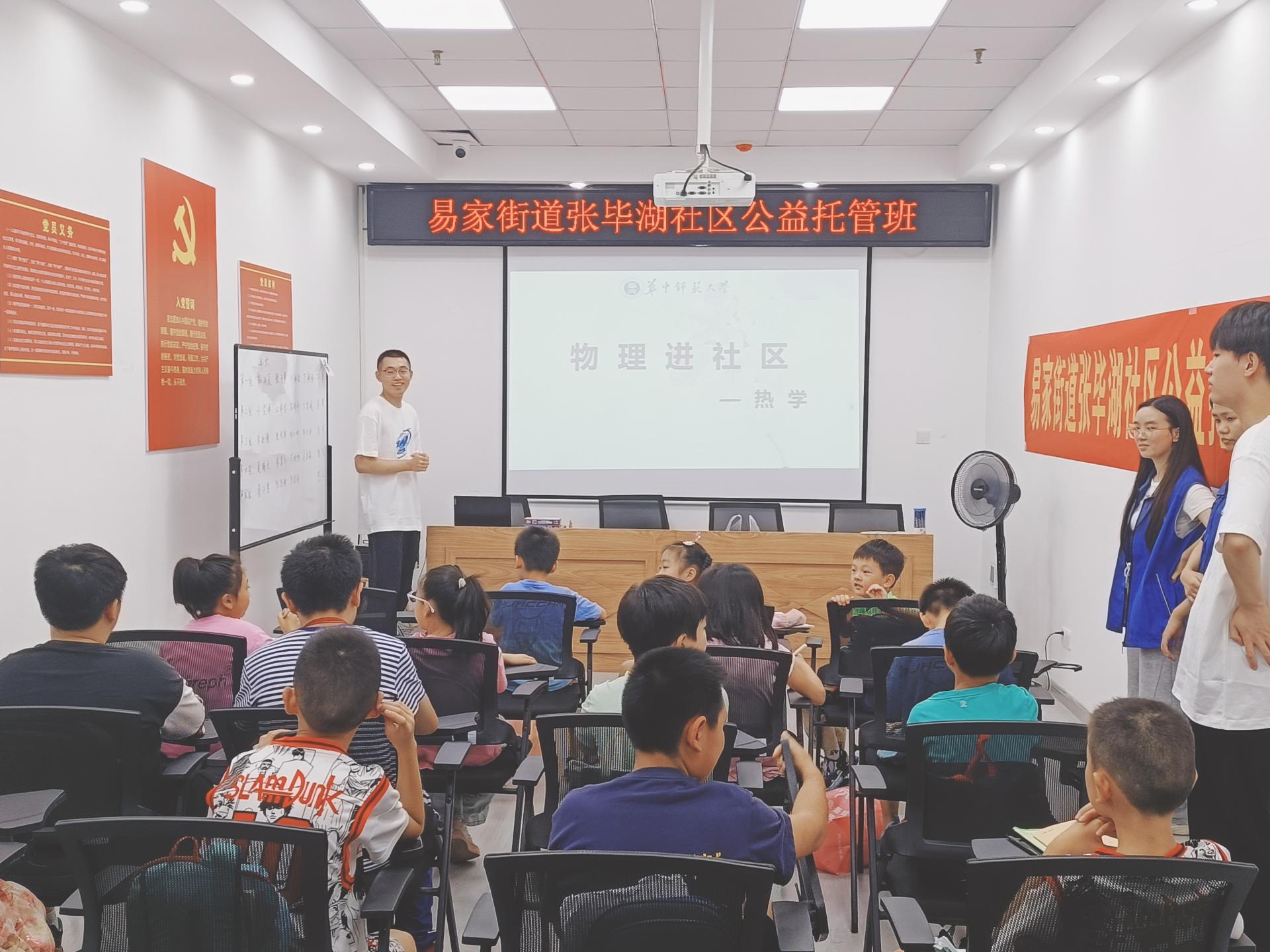 华大青年讯(通讯员 李瑶珊 代书芳 赵华莹 程夕)为带领社区小朋友们领略物理科学的魅力,激发孩子们对物理的好奇心与求知欲,8月13日至16日,华中师范大学物理科学与技术学院“格致·科普‘团’聚青春”社区科普实践队张毕湖实践分队(以下简称“实践队”)在硚口区张毕湖社区推出“热电光声力”五个主题的物理科普小课堂。