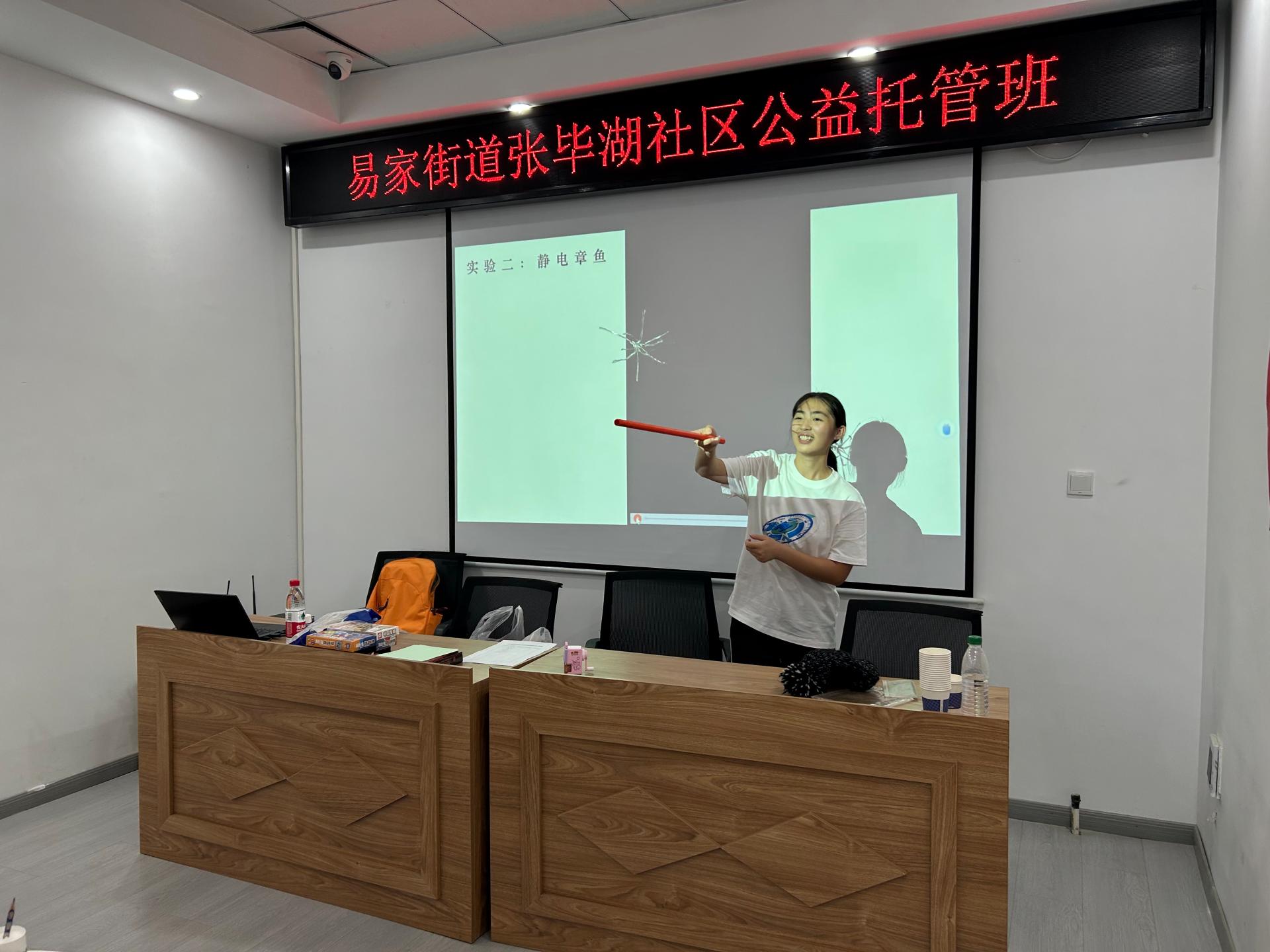 14日上午,实践队队员王郑艺与小朋友们共同开启了电学的探索之旅。王郑艺通过播放动画片,并以“静电爆炸”发型为切入点,清晰地解释了摩擦起电的基本原理,并鼓励同学们发表自己关于摩擦起电的理解。同时,王郑艺还带领小朋友们制作静电小风车和静电章鱼,一起感受静电的神奇魅力。课程最后,她还强调了静电的危害及防护措施,提醒小朋友们在日常生活中注意用电安全。