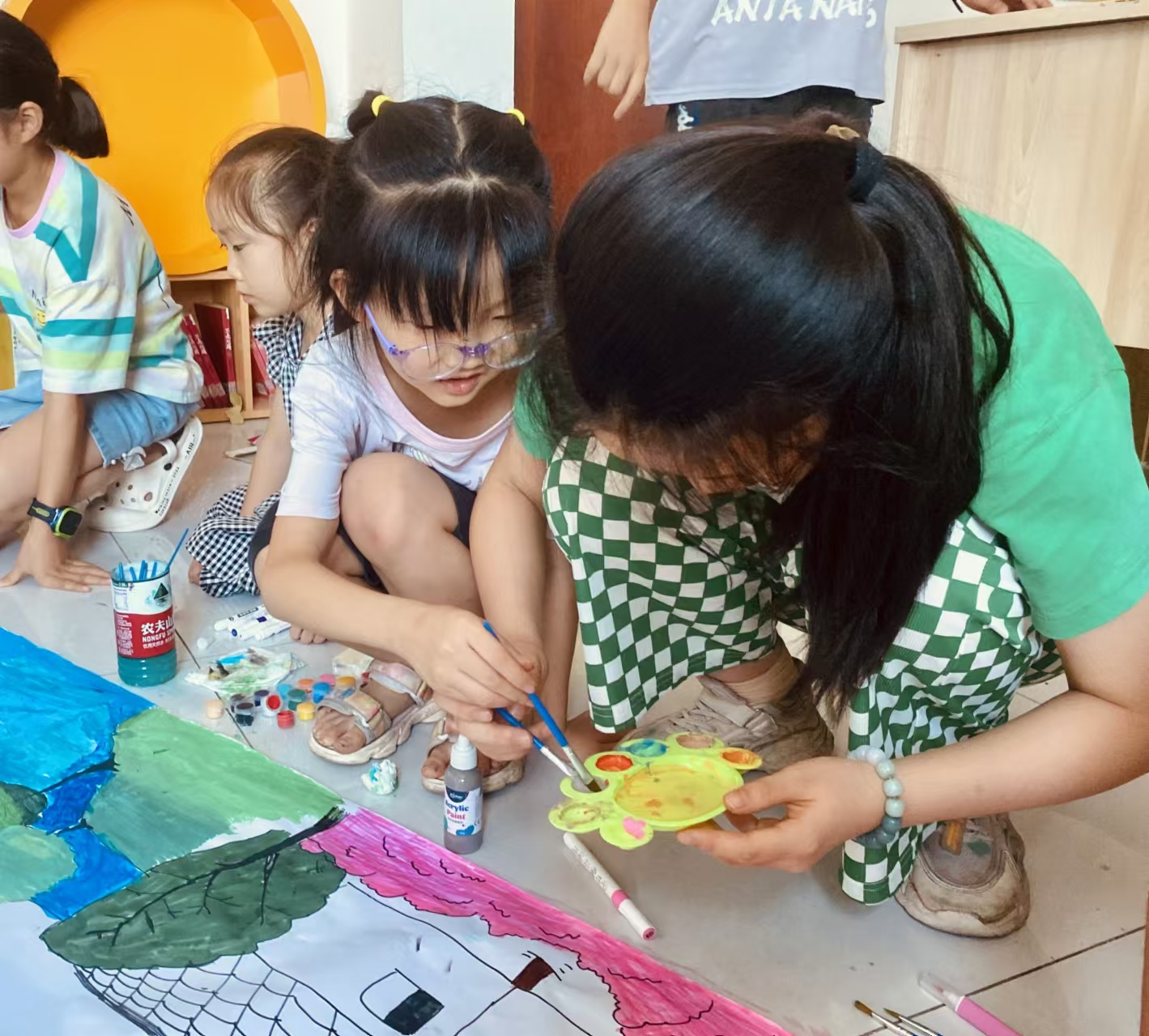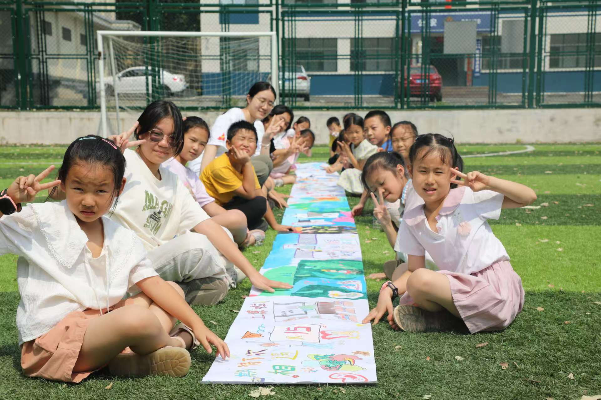 在广宜服饰,特色课程成为了主角。学生们在绘制“头脑特工队——情绪管理”、“甲骨文学习”、“创意气球制作”、“小导游培训”、“脸谱绘画”以及各类运动课程的画面时,充满了欢声笑语。他们在画布上自由挥洒,既回忆了丰富多彩的课堂时光,又记录着教育创新的步伐和孩子们渴望艺术与知识的模样。